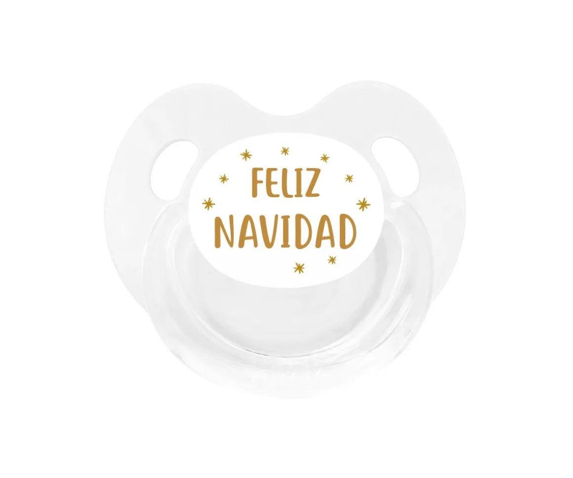 Chupete Retro Blanco Feliz Navidad Estrellas