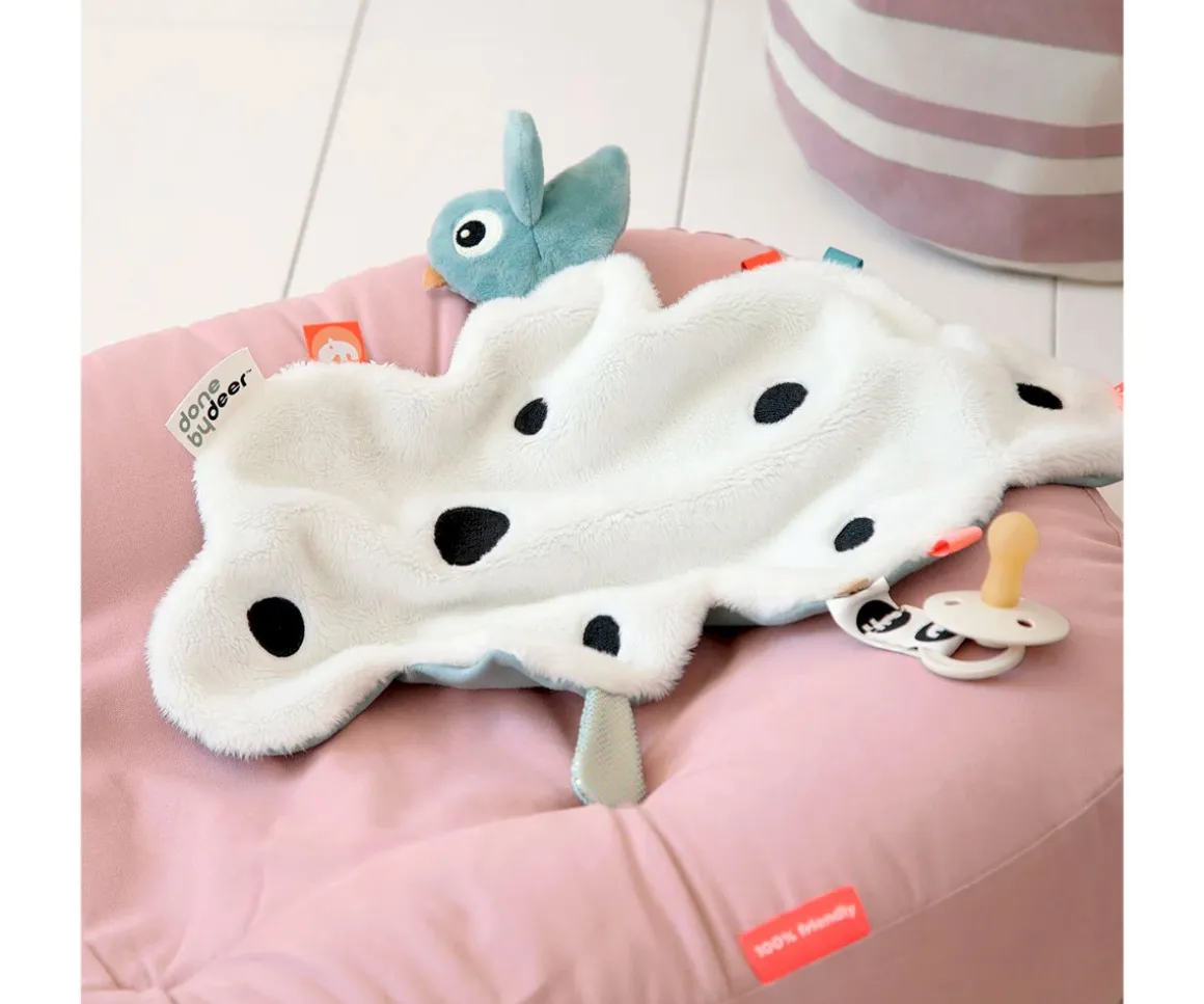 Este chupetero pañito súper suave y cómodo hará doble función, sujetar el chupete y dar seguridad cuando se acurruque.