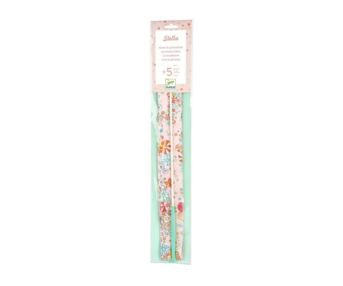 Esta cinta de gimnasia, bonita por sus motivos florales, es ideal para que tu peque practique sus figuras favoritas de gimnasia rítmica.
