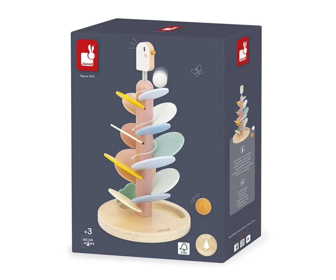 Al caer las bolas los peques descubrirán sonidos suaves y repetitivos.Las bolas caerán en una muesca en la base del árbol.