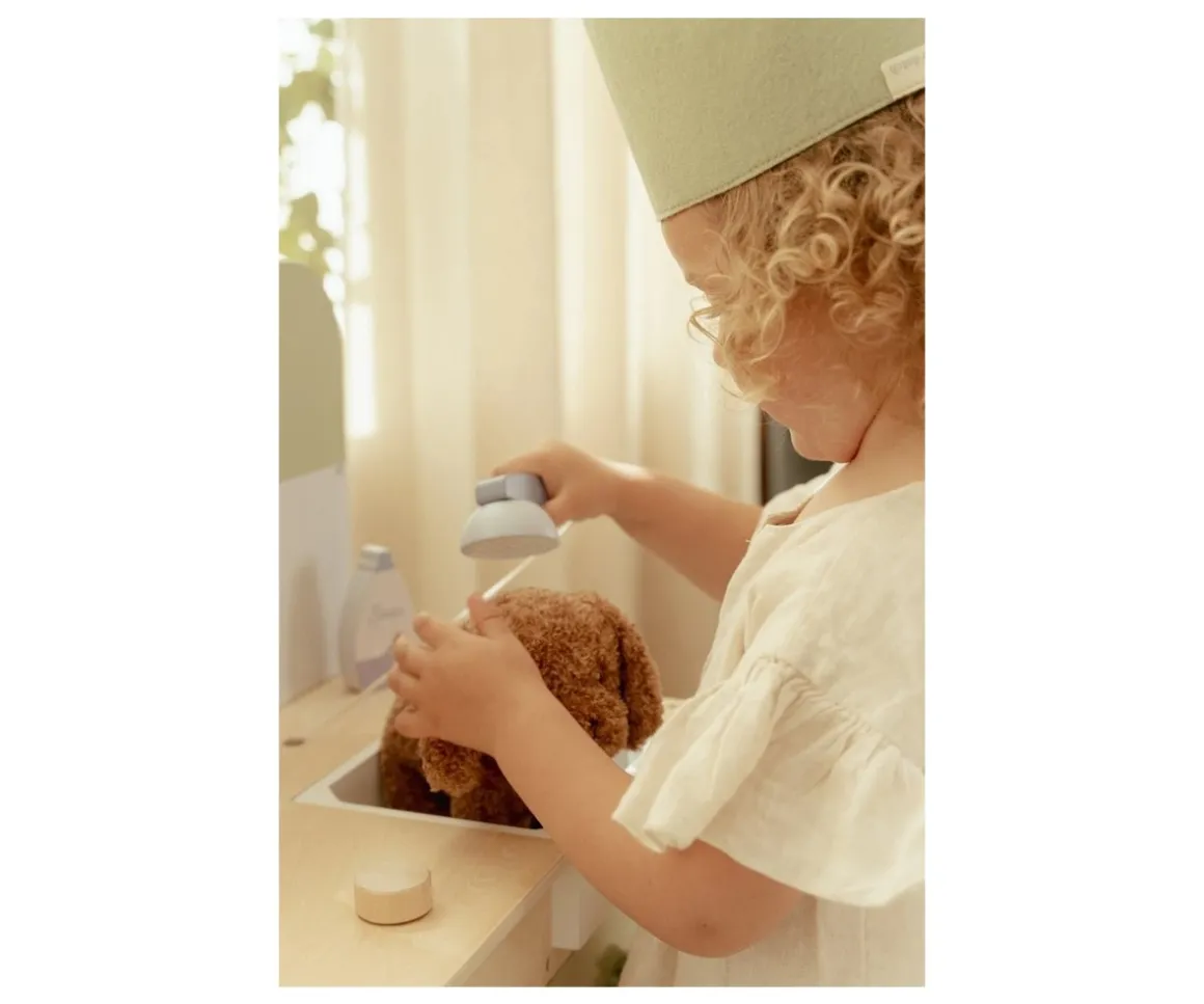 Un lugar en el que podrás dar todos los cuidados que necesiten a tus peluches como si fueras un auténtico veterinario. En esta clínica encontrarás una ducha retráctil con lavabo, un peine, un termómetro, una jeringa, vendas, una diadema de tela y un clip especial para mostrar ilustraciones médicas y radiografías.