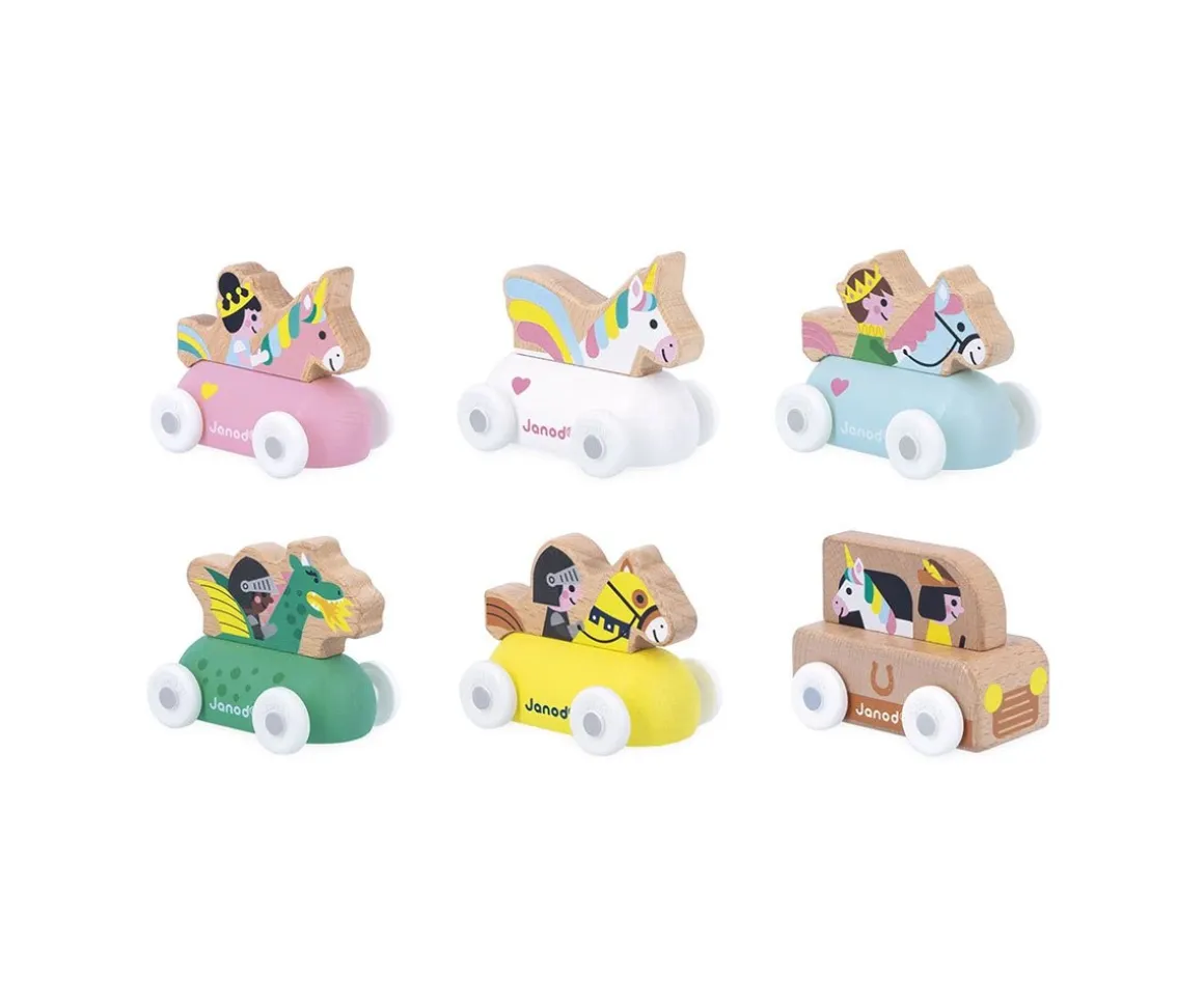 El cochecito de madera princesa de la colección Cross Roads de Janod tiene el tamaño y la forma perfectos para que las manos de los peques lo manipulen fácilmente. Les encantará hacerlo rodar por todas partes e inventar todo tipo de historias y juegos.
