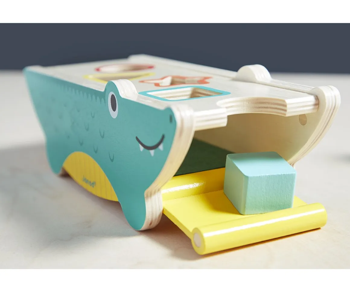 Te presentamos una caja de formas de madera original que divertirá a los niños a partir de los 12 meses durante largas horas. En forma de cocodrilo, este juguete de primera infancia viene con 8 piezas para encajar: 2 círculos, 2 triángulos, 2 estrellas y 2 cuadrados. Cada forma corresponde a un color para facilitar al bebé el aprendizaje y la manipulación. Cuando nuestro amigo el cocodrilo tenga todas las piezas dentro, le abriremos la boca de par en par para recuperar las piezas (abertura magnética). El interior de la caja de las formas está cubierto de fieltro, lo que amortigua el ruido que hacen las formas cuando caen. Este juguete de estimulación es ideal para niños de a partir de 1 año, quienes podrán descubrir las formas y los colores mientras se divierten, y desarrollar su coordinación manipulando las piezas para encajar.