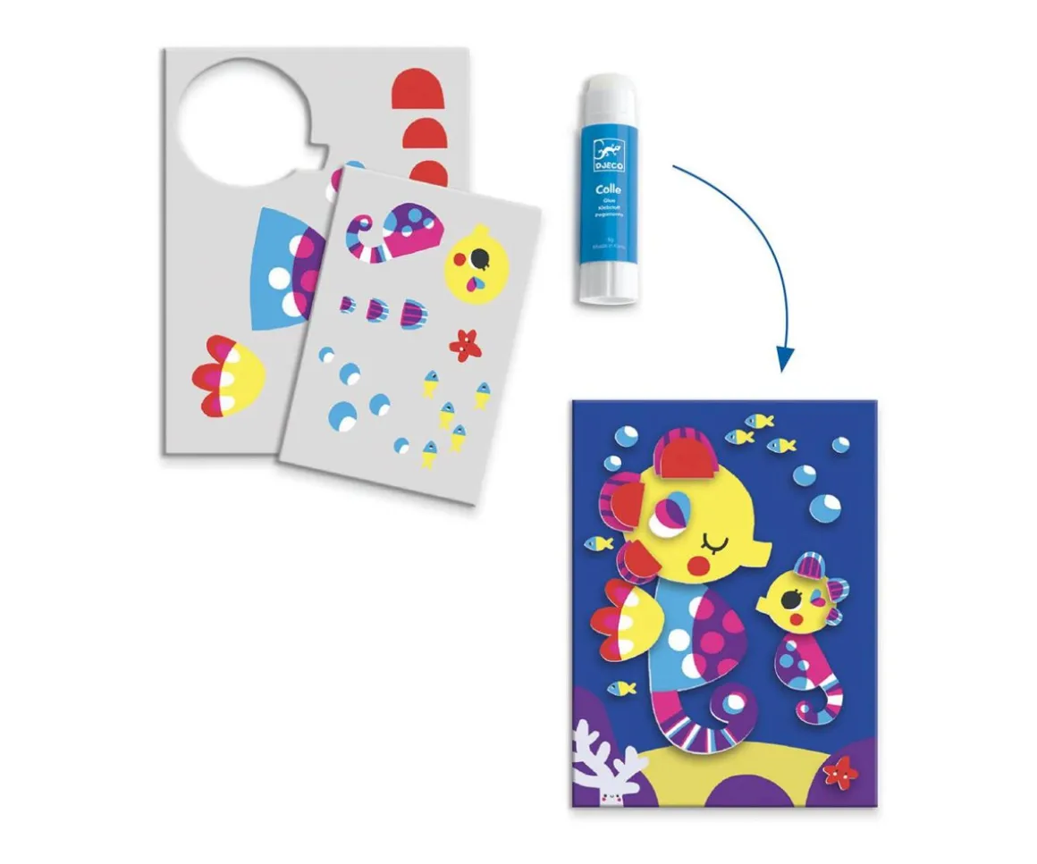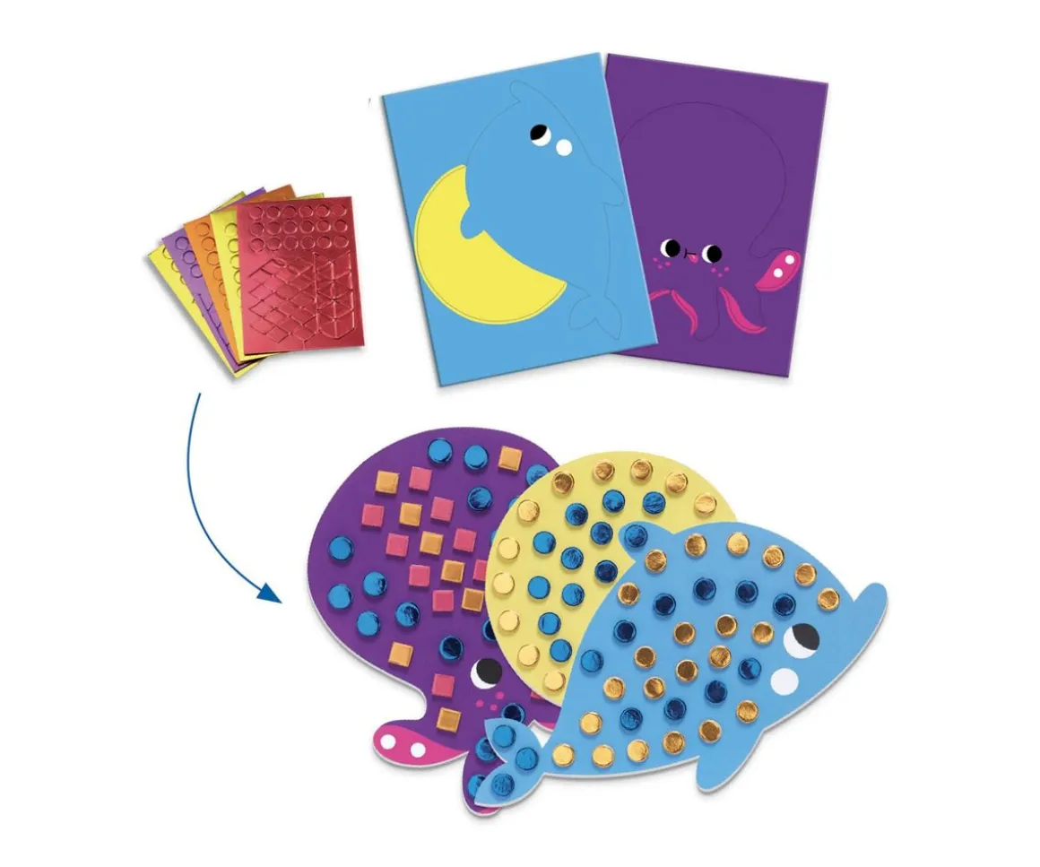 Un set muy completo que ofrece 6 actividades creativas y muchos proyectos de temática marina: collage, colorear, mosaicos, corte, montaje, calcar … ¡Hay para todos los gustos! Horas de actividades manuales para descubrir diferentes técnicas creativas.