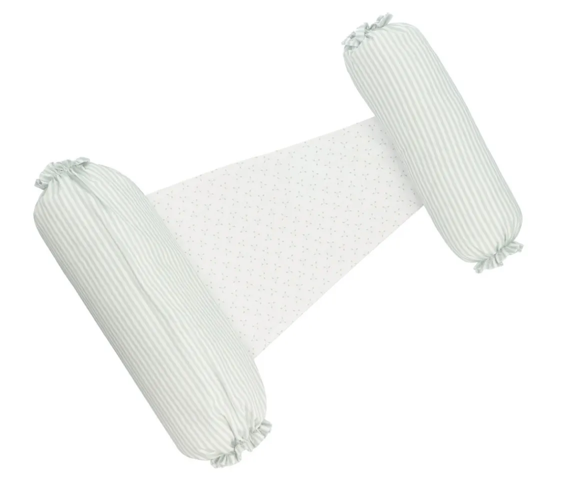 Este cojín antivuelco de sujeción para el bebé, consiste en 2 suaves y acolchados cojines ligados por una suave tela de algodón. Además de ser muy confortable, evitará que el niño se voltee sobre su vientre al dormir durante sus primeros meses.