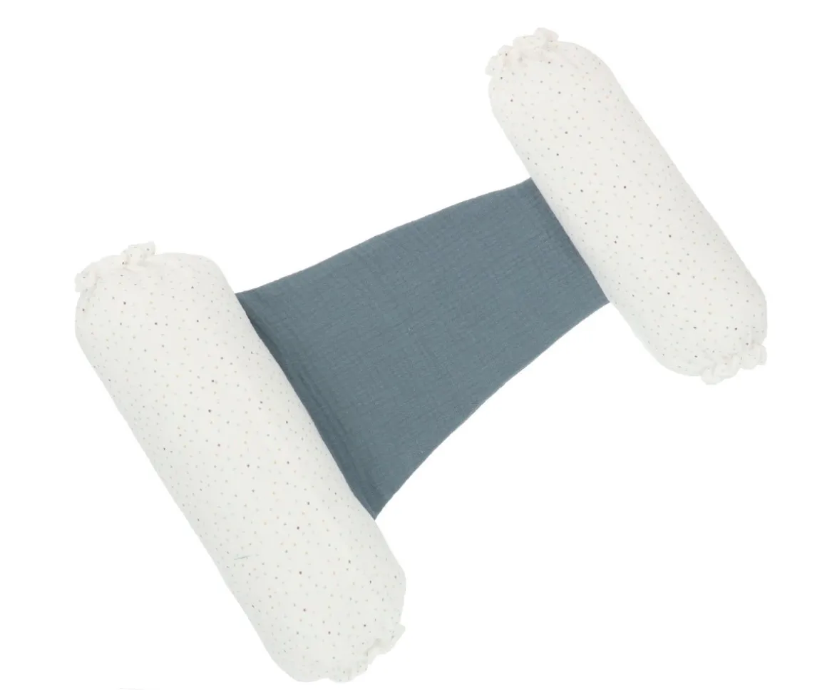 Este cojín antivuelco de sujeción para el bebé, consiste en 2 suaves y acolchados cojines ligados por una suave tela de algodón. Además de ser muy confortable, evitará que el niño se voltee sobre su vientre al dormir durante sus primeros meses.