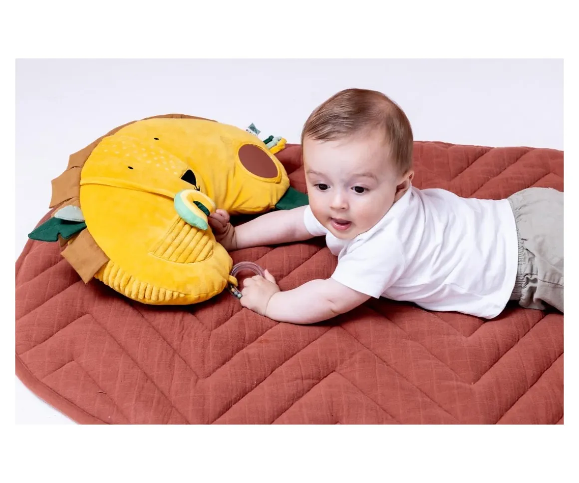Un cojín muy alegre y lleno de actividades en el que tu peque lo pasará en grande jugando boca abajo al tiempo que fortalece el cuello y la espalda.