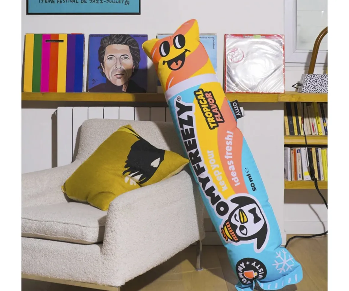 Este cojín hinchable Freezy de OMY tiene un diseño divertido y pop. Perfecto para relajarse o agregar un toque de color alegre a cualquier espacio, su tamaño grande y su estilo lo hace ideal tanto para el hogar como para eventos. Se infla y desinfla fácilmente, ya sea manual o con una bomba de aire.