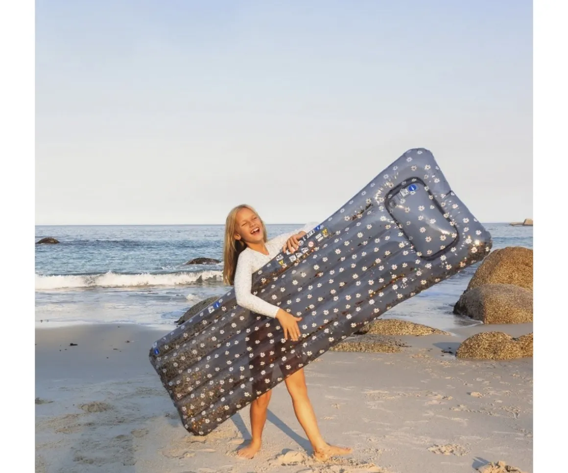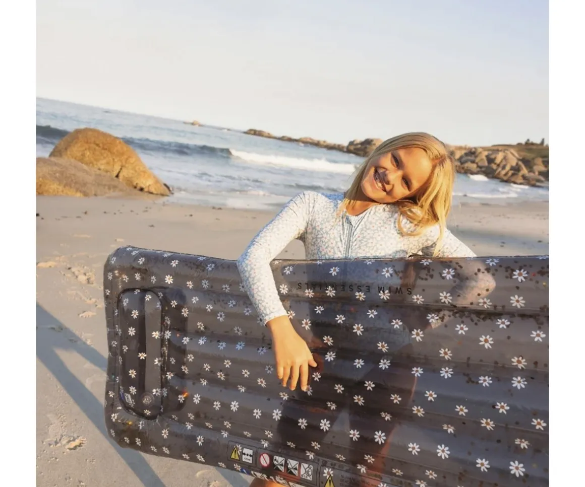 La colchoneta Luxe Daisy Flower con purpurina dorada en su interior y estampado de margaritas de Swim Essentials, es estupenda para que los peques lo pasen en grande durante el baño en la playa o en la piscina.