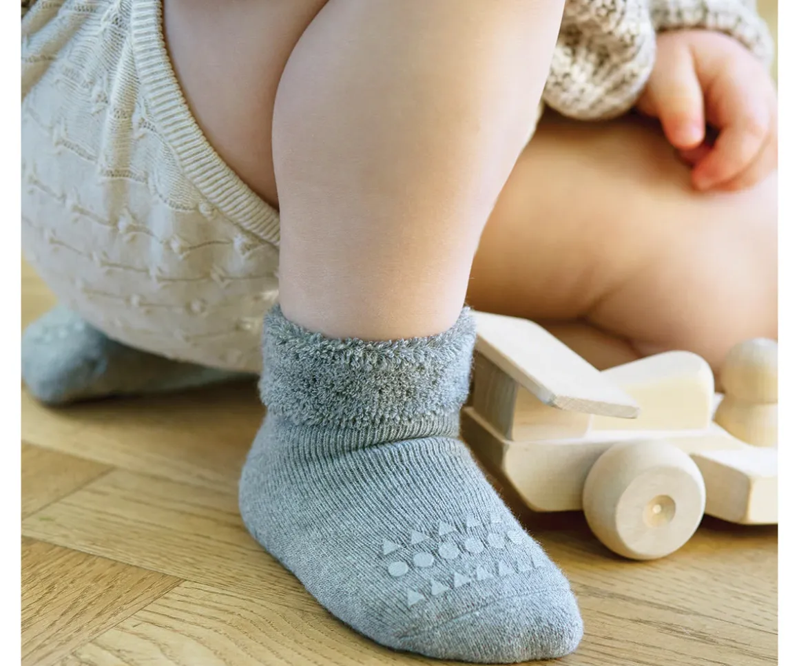 Las almohadillas de goma debajo de los pies y en la parte superior de los dedo aseguran que los peques no se resbalen cuando comienzan a gatear y caminar.