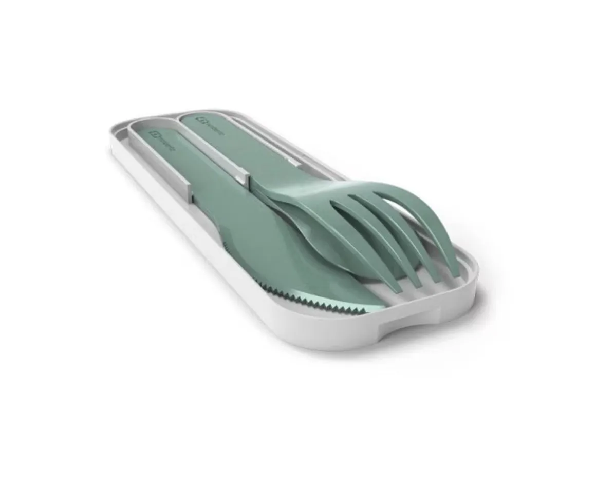 Diseñado en plástico de origen vegetal, este set de tres cubiertos es una alternativa ecológica para llevar contigo.