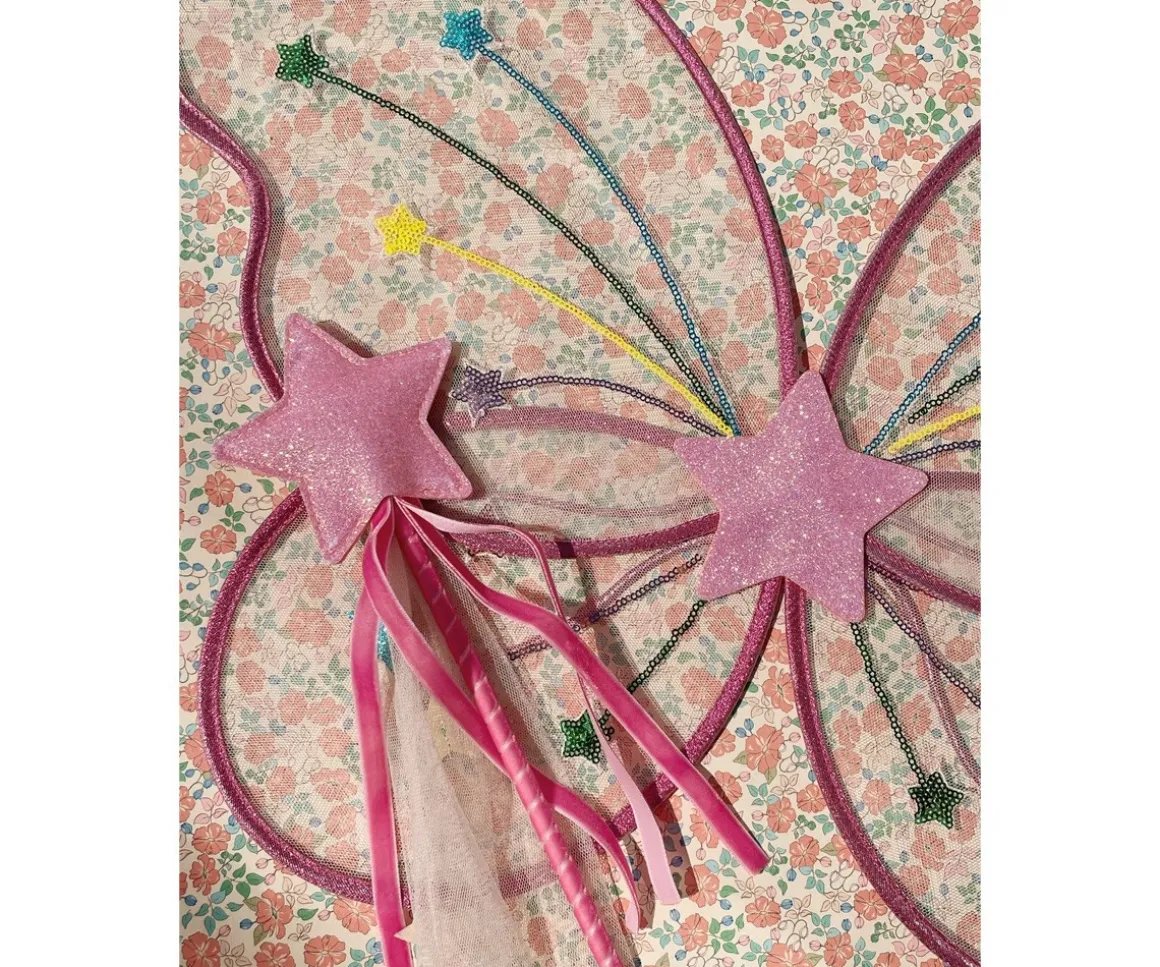 Completa tu disfraz de Hada con estas originales alas de hada con estrellitas brillantes y su varita a juego.