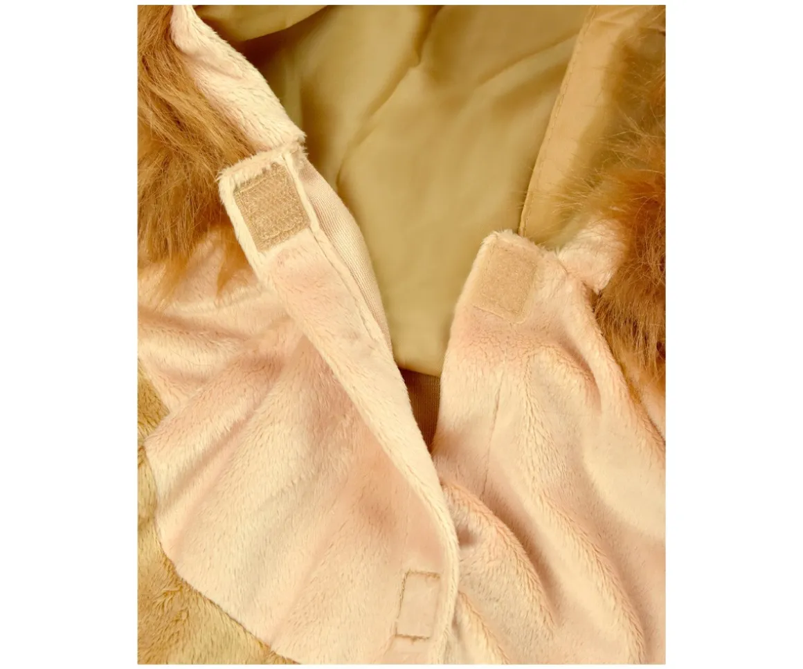 El disfraz se coloca fácilmente gracias a su cierre delantero con velcro, lo que permite ponerlo y quitarlo sin complicaciones. Incorpora una capucha cosida con melena de león y simpáticas orejitas, además de una cola suave al final del disfraz, ¡para un look completo y muy divertido!