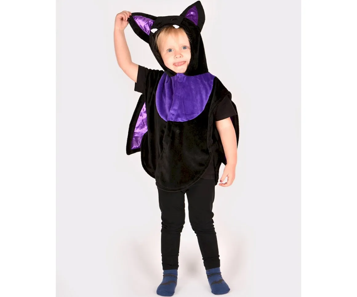 Serás el murciélago más travieso con la capa con capucha y detalles color púrpura metalizado de Den Goda Fen. Muy fácil de poner y quitar gracias a su cierre e velcro y las bandas elásticas laterales.