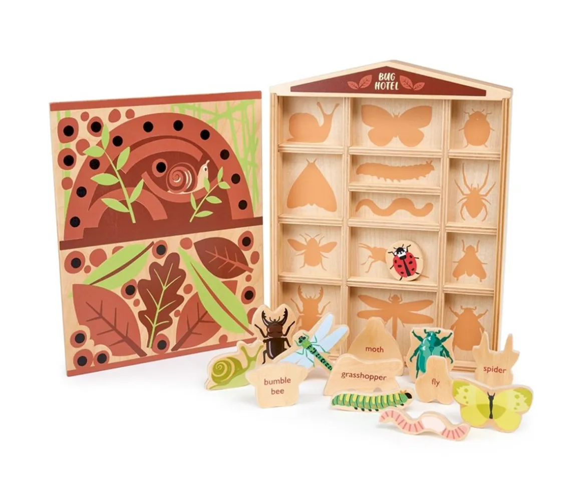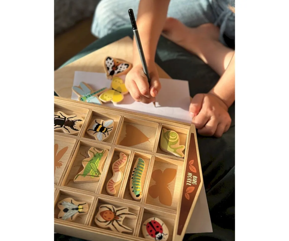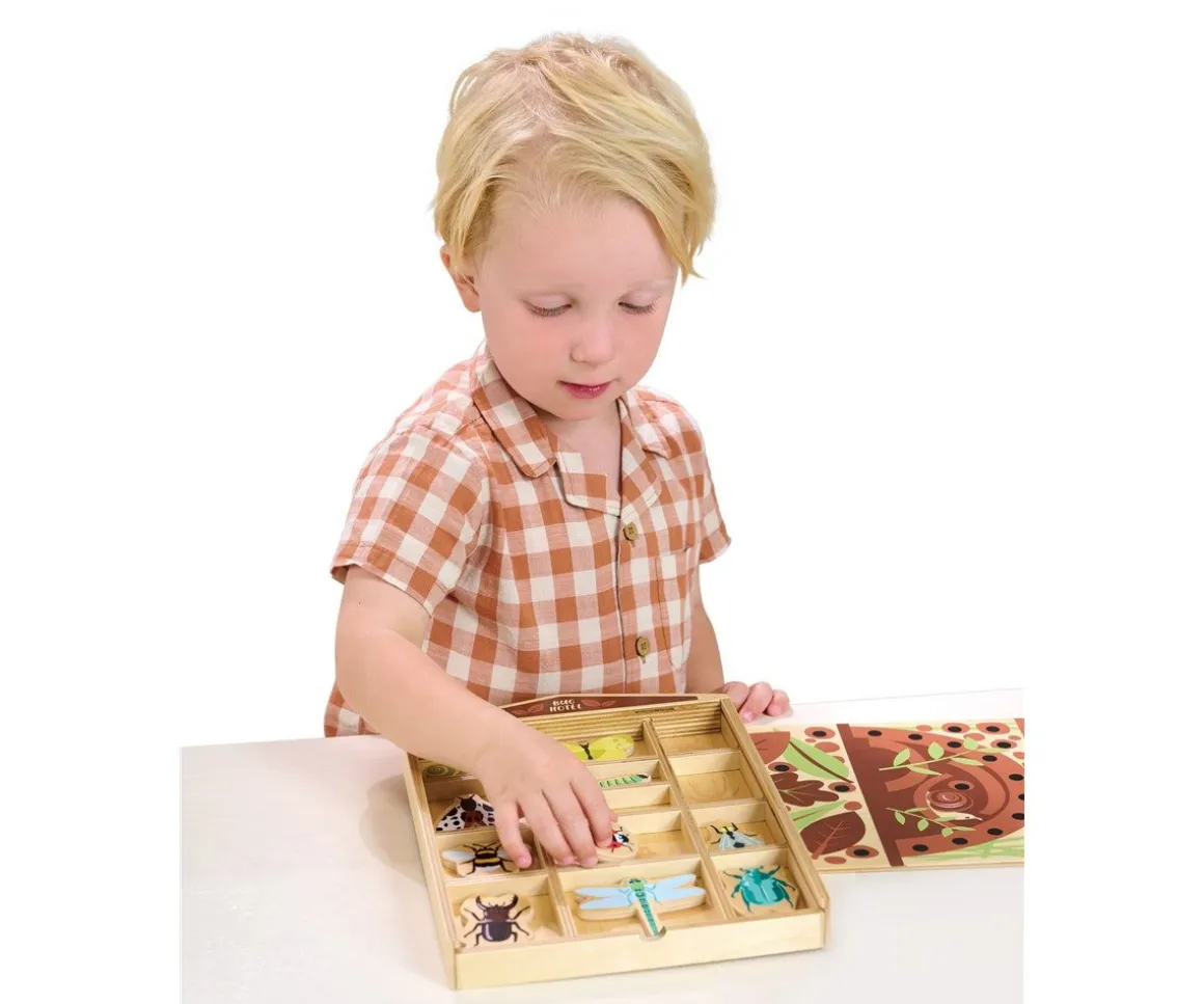 Descubre el original hotel para bichos de Tender Leaf. Se trata de una cajita compartimentada en la que encontrarás 13 bichitos diferentes. Cada bichito tiene su casilla correspondiente, y en la parte trasera del bichito podrás leer su nombre en Inglés.