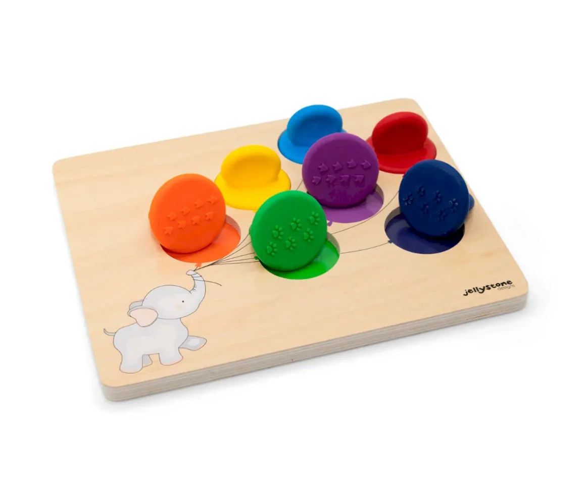 Los peques podrán desarrollar su reconocimiento de los colores haciendo coincidir las tapas de silicona con el globo de color correspondiente.