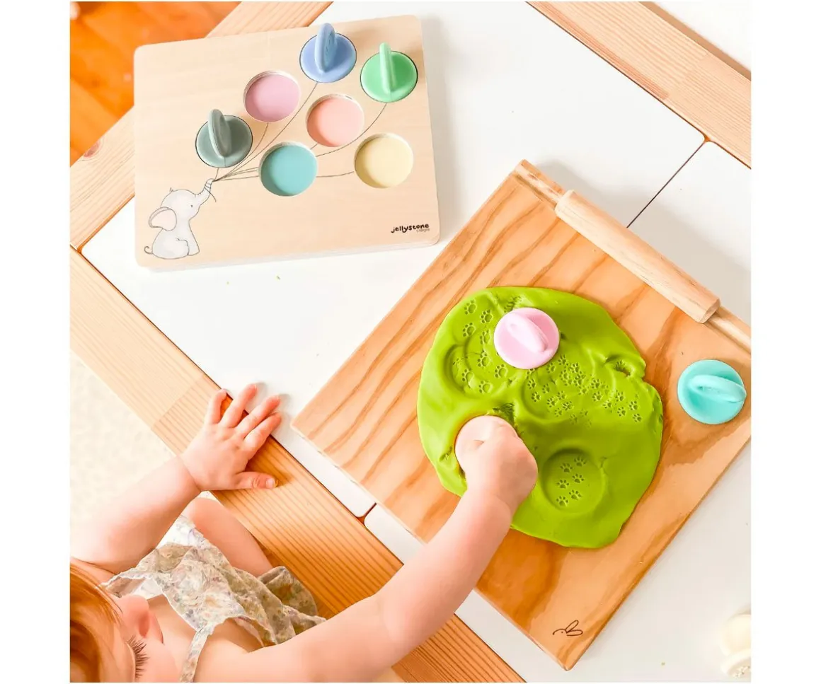 Además podrán usar las tapas de silicona como mordedor, son libres de tóxicos, y ayudarán en el proceso de dentición. Debajo de cada tapa hay mini huellas, que podrás usar en plastilina para mayor diversión.