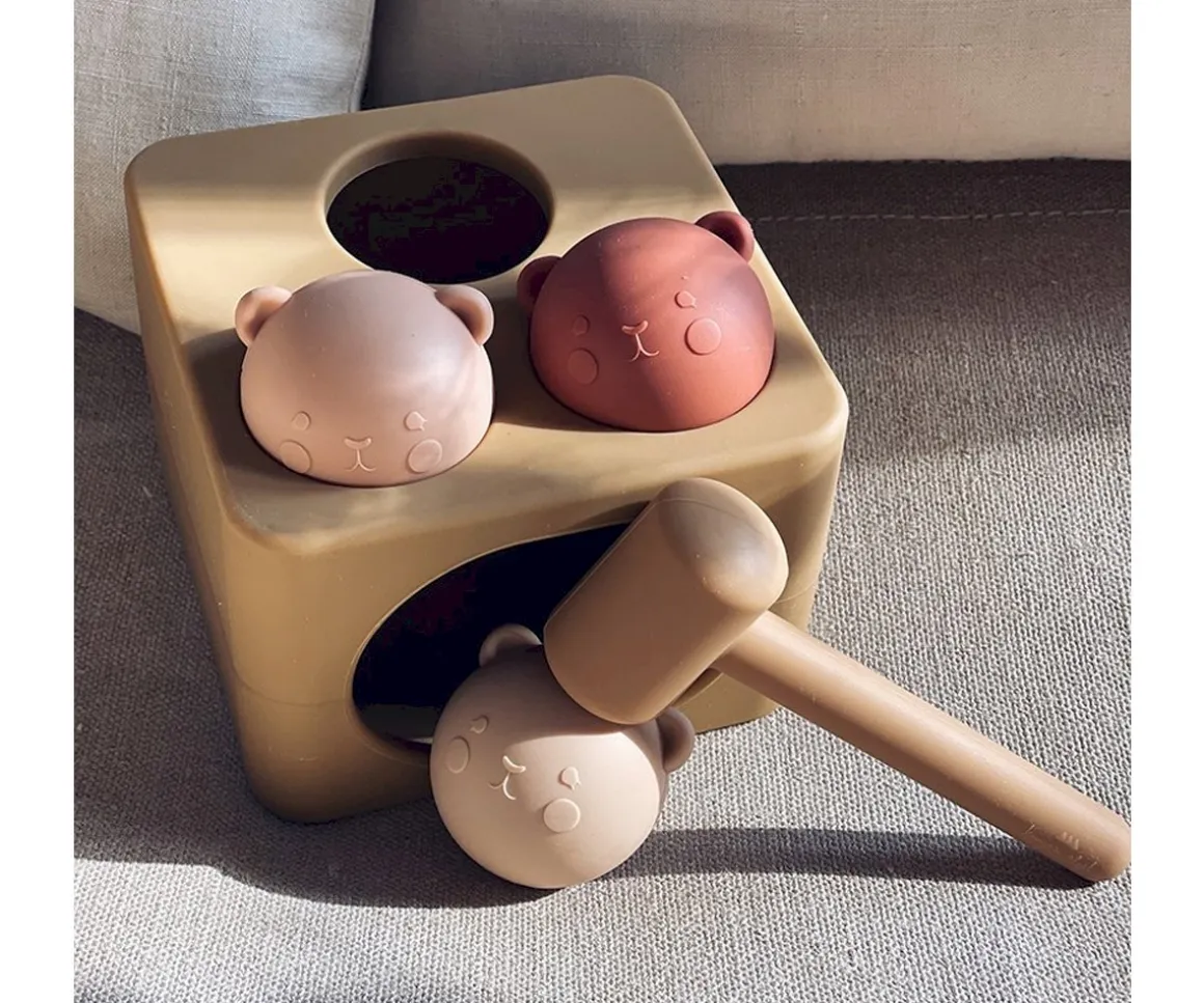 Divertido encajable de tres bonitas bolas que simulan un hamster y que tendrás que introducir por los orificios con ayuda del martillo en su interior. Un juguete perfecto para desarrollar la motricidad fina y la percepción de los tamaños.