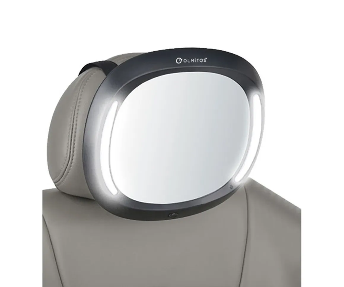 El espejo retrovisor infantil está diseñado para ver y controlar al bebé que viaja en contramarcha durante los viajes en coche. Permite tener una visión clar del bebé en todo momento sin apartar la vista de la carretera. Instálalo en el reposacabezas del asiento trasero, ajústalo para tener el mejor ángulo de visión y estará listo para ver la cara del bebé y sus movimientos en todo momento. Cuenta con luz led que permite ver al bebé incluso por la noche y un mando de control que permite activar la luz durante 10 segundos o de manera constante.