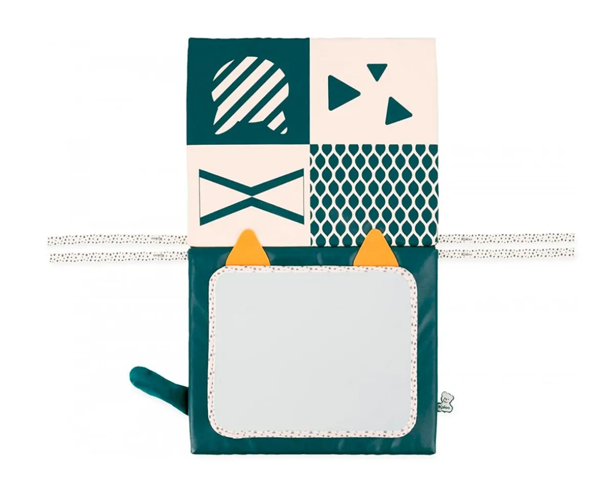 Con diferentes texturas para estimular el sentido del tacto, un espejo, colores y estampados con contraste que le permitirá desarrollar el sentido de la vista y con cintas par poder colgarlo en cualquier parte.