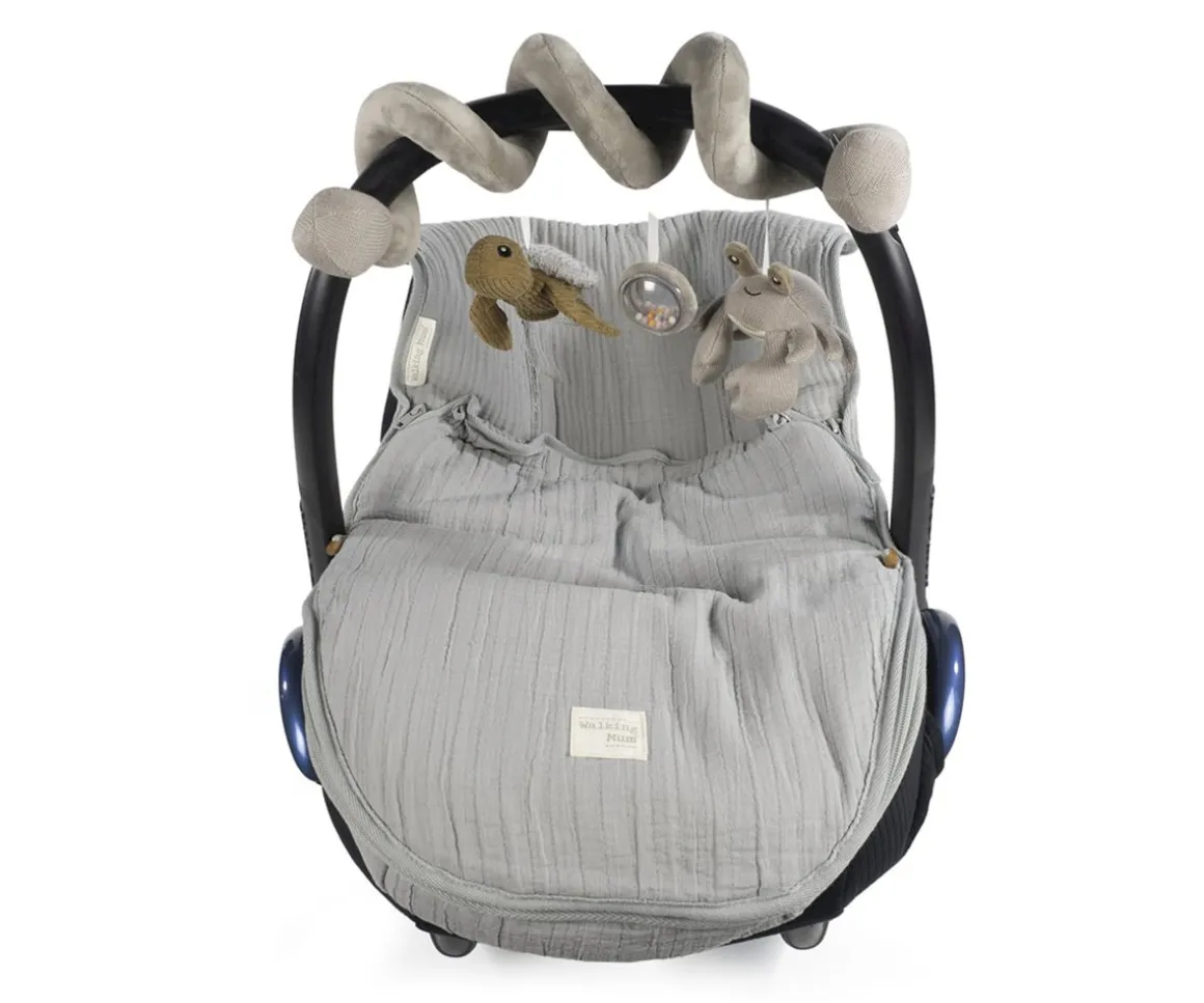 Momentos de diversión y juego para los peques,en la silla de paseo o silla para el coche,con la suave espiral de actividades de Walking Mum formada por un sonajero, el Pulpo Lola y la Ballena Nico.