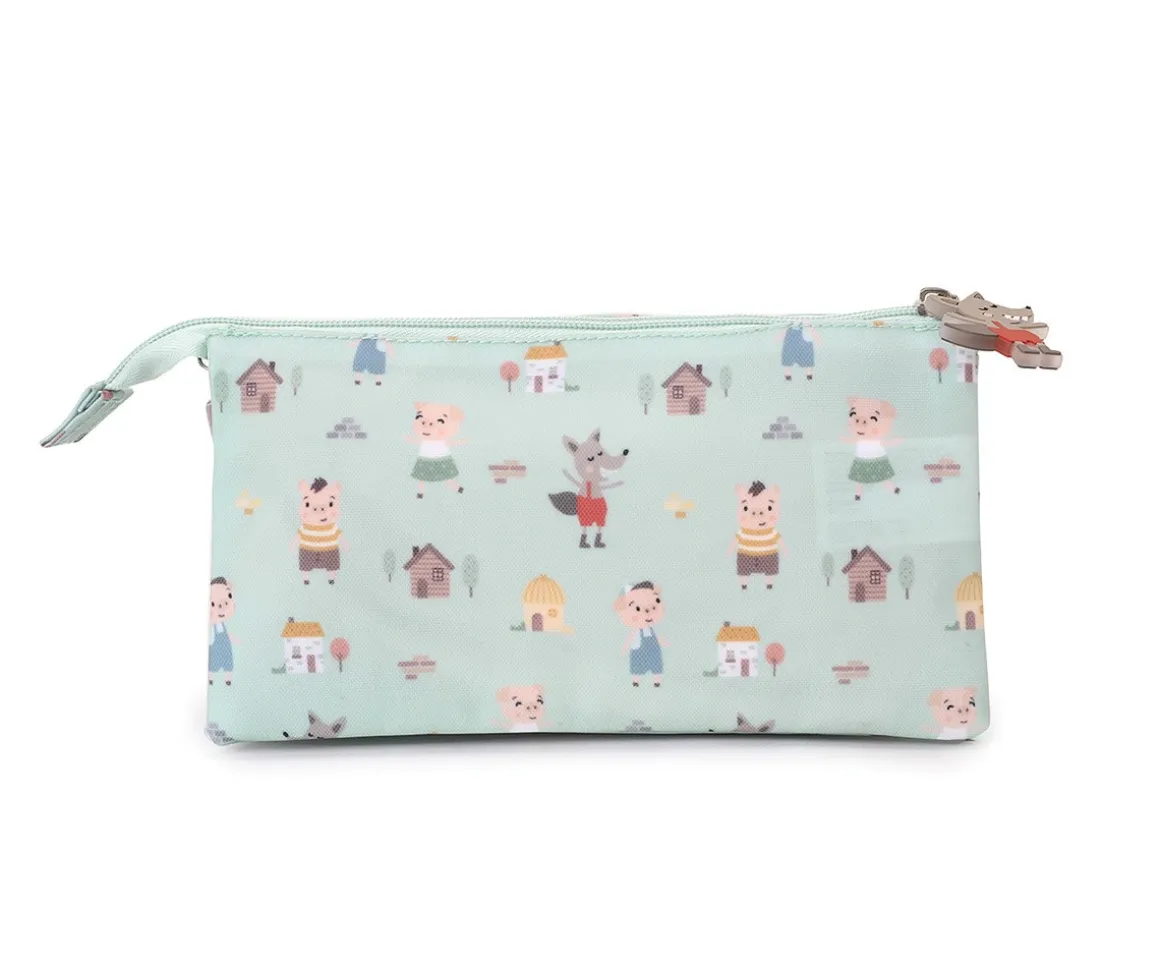 Estuche Escolar de 3 Compartimentos Personalizado de la Colección Vuelta al Cole The Three Little Pigs de Tutete.