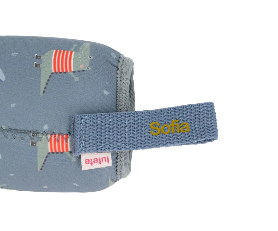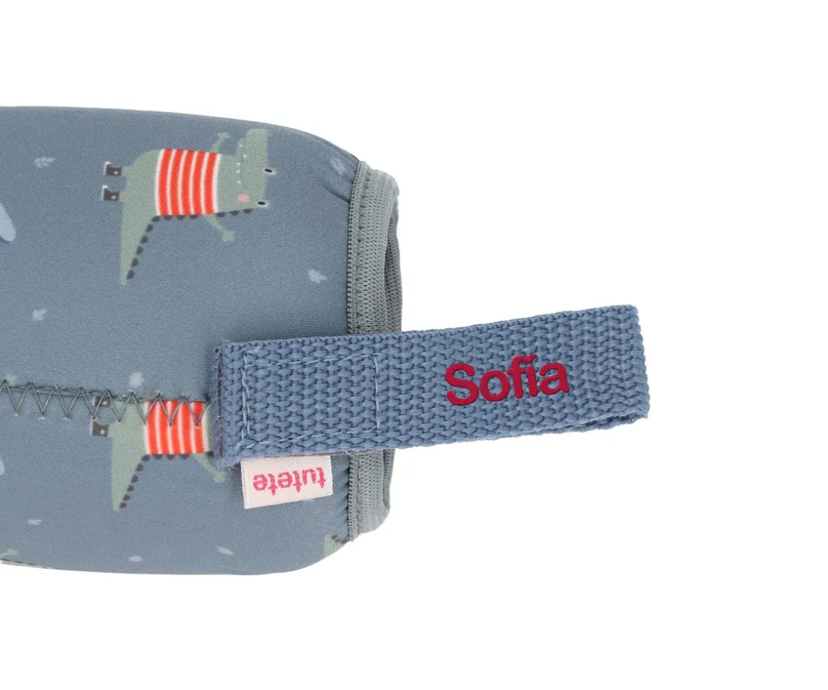 Funda de neopreno para proteger la botella de acero decorada con los personajes de las nuevas colecciones de la Vuelta al Cole Tutete 2024.