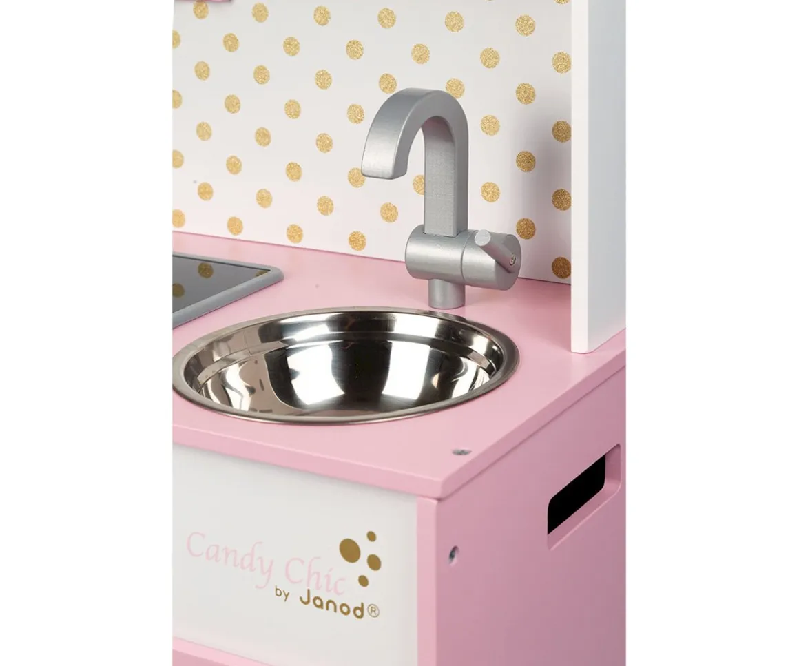 - Esta magnífica cocina totalmente equipada contiene igualmente un horno, un microondas, un armario y un frigorífico con puertas magnéticas, 3 botones giratorios con efectos sonoros, un fregadero de acero inoxidable y un reloj