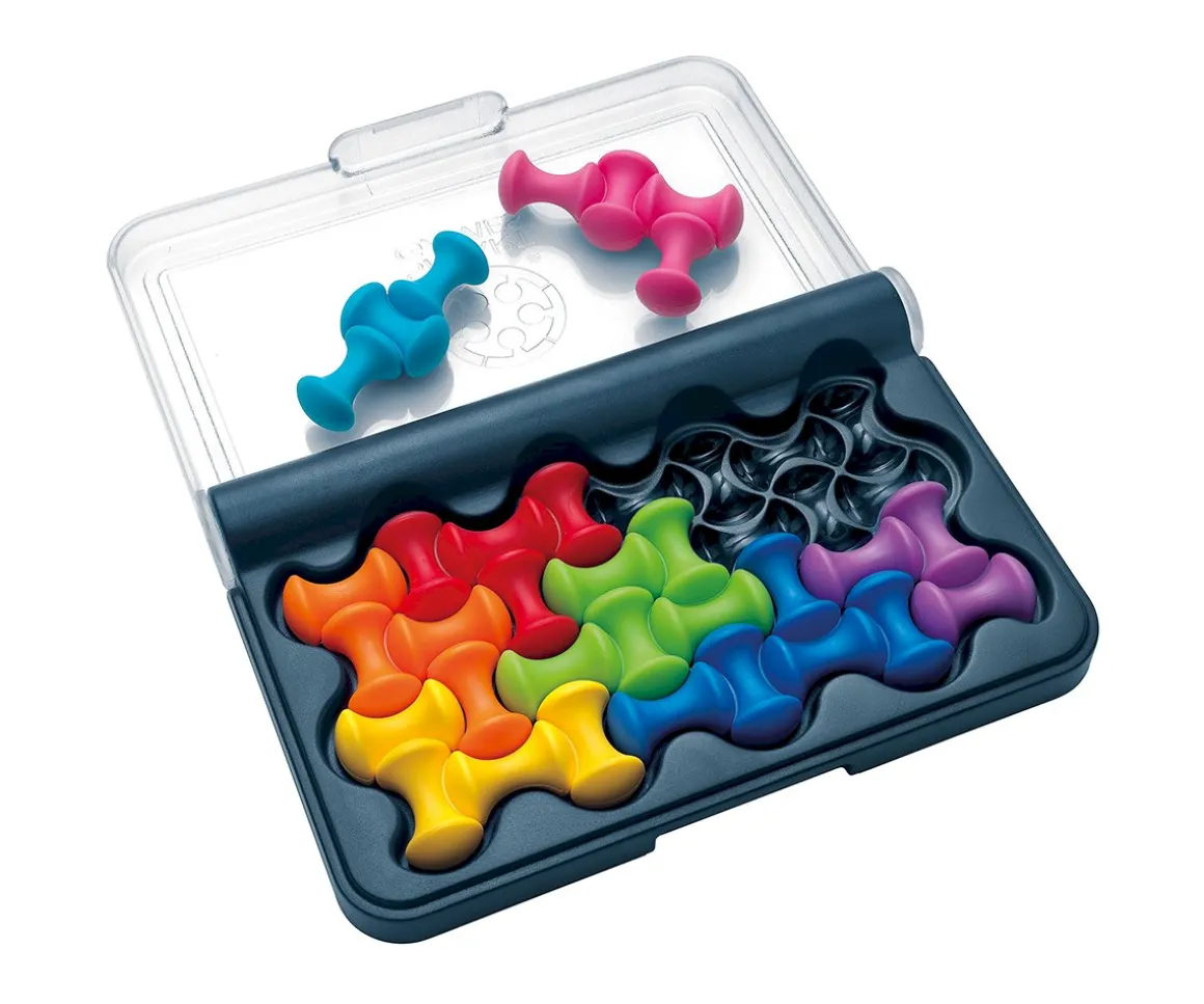 IQ Wave viene en un formato compacto, con tapa para llevarlo y jugar donde quiera que vayas.