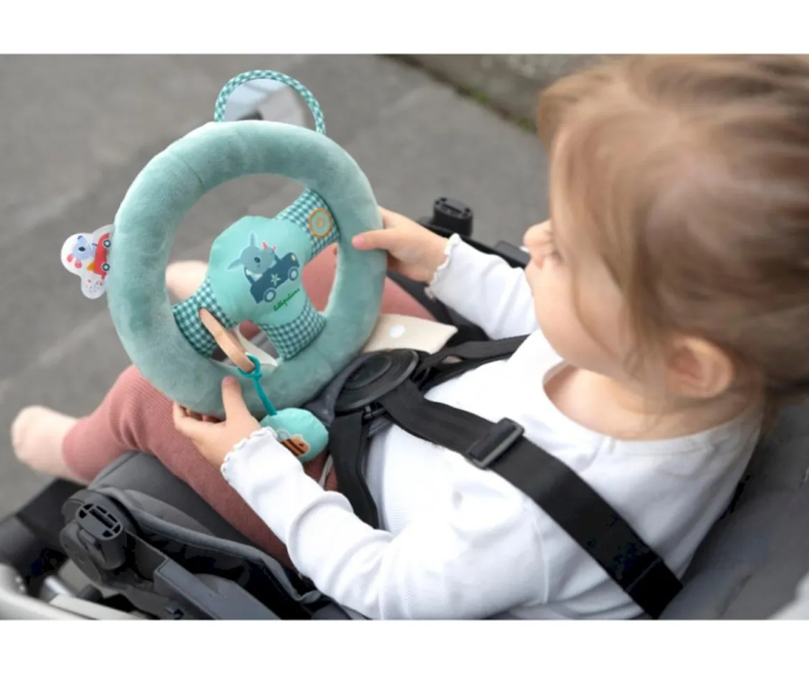Este volante extraíble que se fija al cinturón del coche es perfecto para reproducir las acciones de los mayores, estimulando al mismo tiempo la imaginación del niño.
