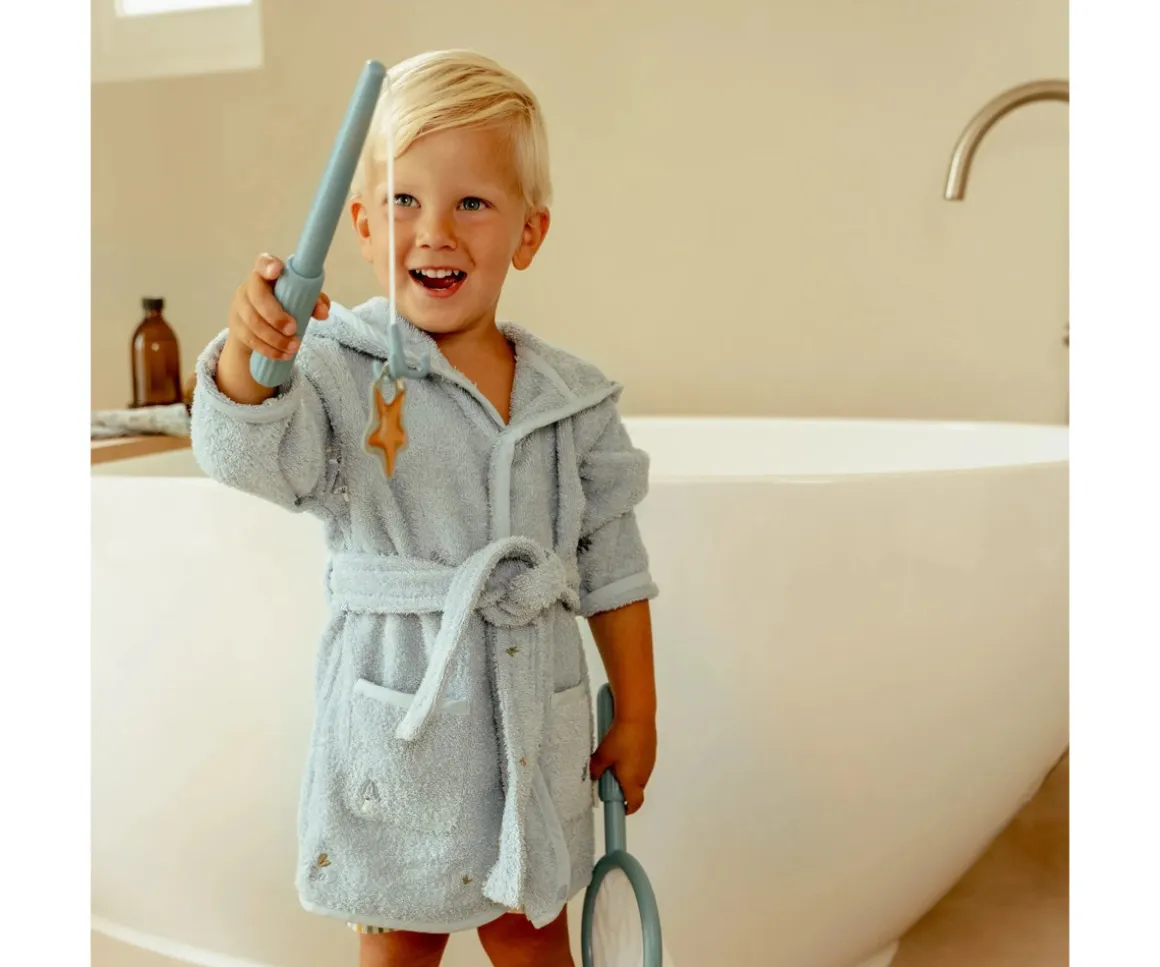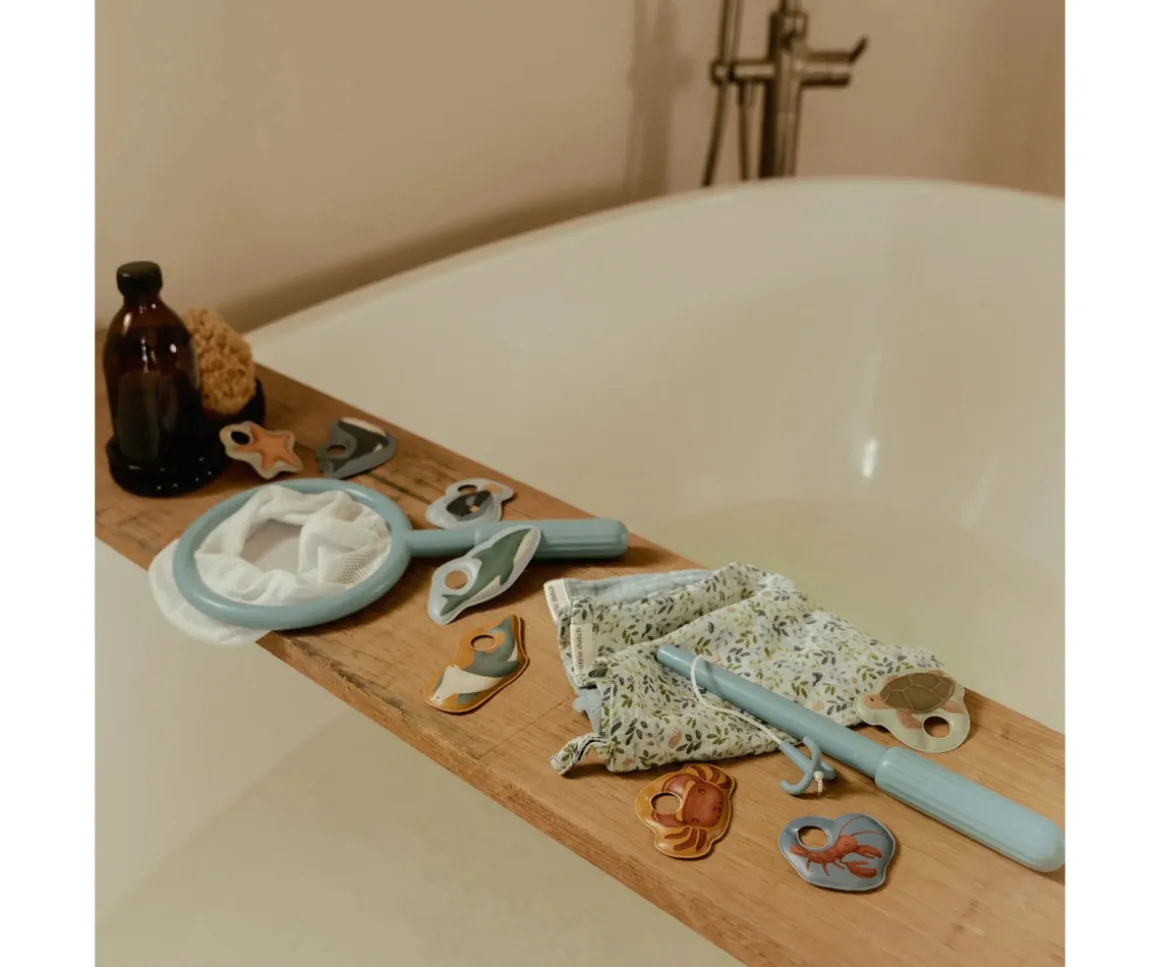 Convierte la hora del baño en una divertida aventura acuática con el juego de pesca azul de Little Dutch. Este encantador set incluye una caña de pescar, una red y ocho coloridas figuras de animales marinos.