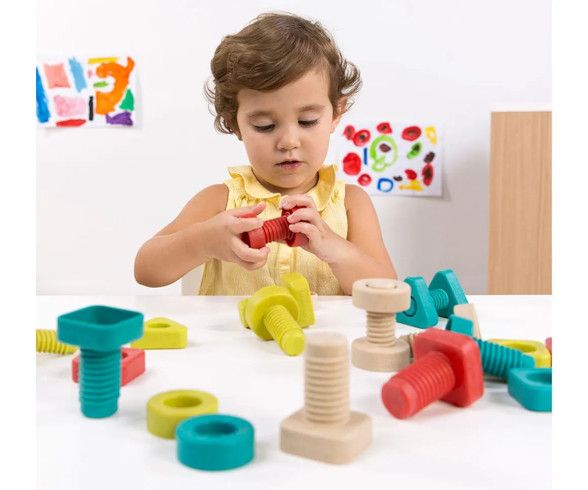 Enroscar y desenroscar será muy divertido con este set de tornillos y tuercas de gran tamaño de Miniland.