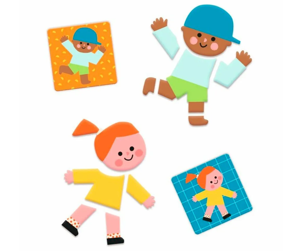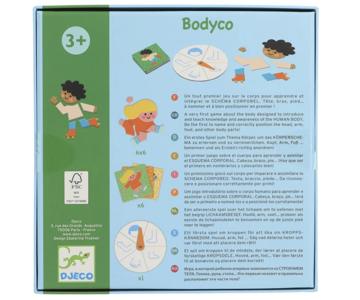 Con este juego educativo tu peque podrá empezar a familiarizase con el cuerpo humano. Aprenderán a nombrar las diferentes partes del cuerpo y a posicionarlas conociendo y asimilando el diagrama corporal.