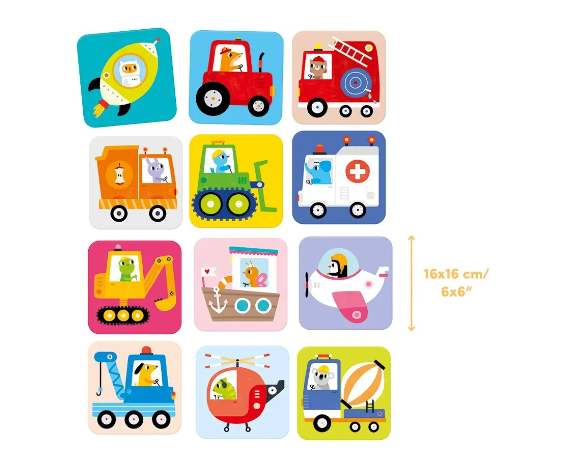 ¡Los peques se lo pasarán en grande emparejando los vehículos con este juego de memoria y sus tarjetas gigantes!