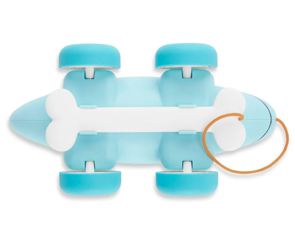La pandereta es extraíble, para que los peques la agiten fácilmente gracias a su tamaño diseñado para las manos más pequeñas. Si la colocas en la espalda del dinosaurio y lo empujas verás como giran las púas mientras las ruedas se balancean. El divertido hueso es ideal para que los peques tiren de el por toda la casa.