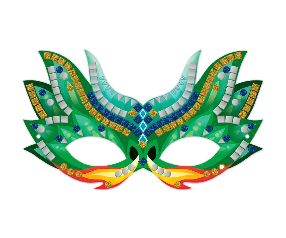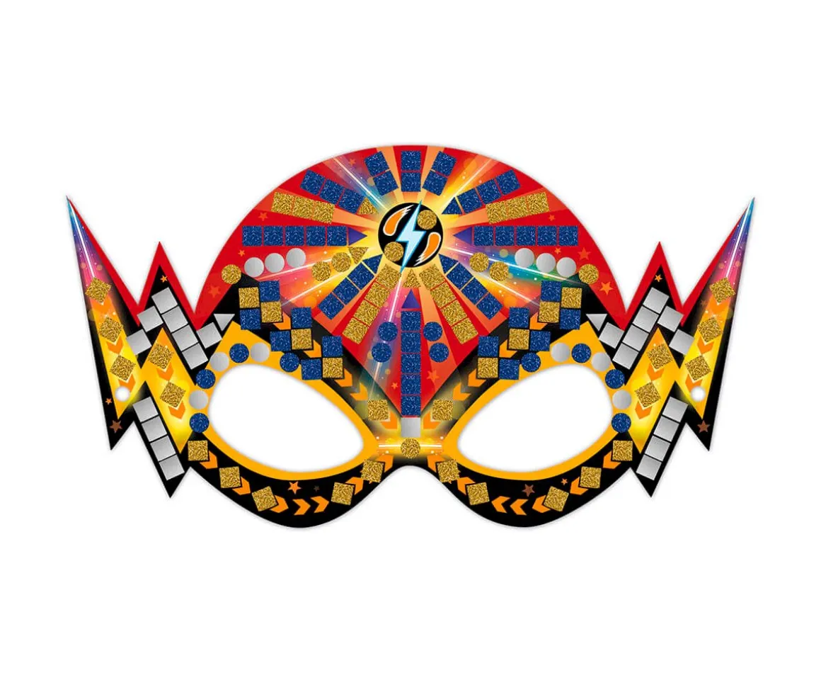 Los peques podrán crear 6 máscaras de espuma mate o brillante. Gracias a las marcas de la máscara de cartón, los peques eligen el color del mosaico correspondiente y lo ponen en su sitio para ir conformando su obra.