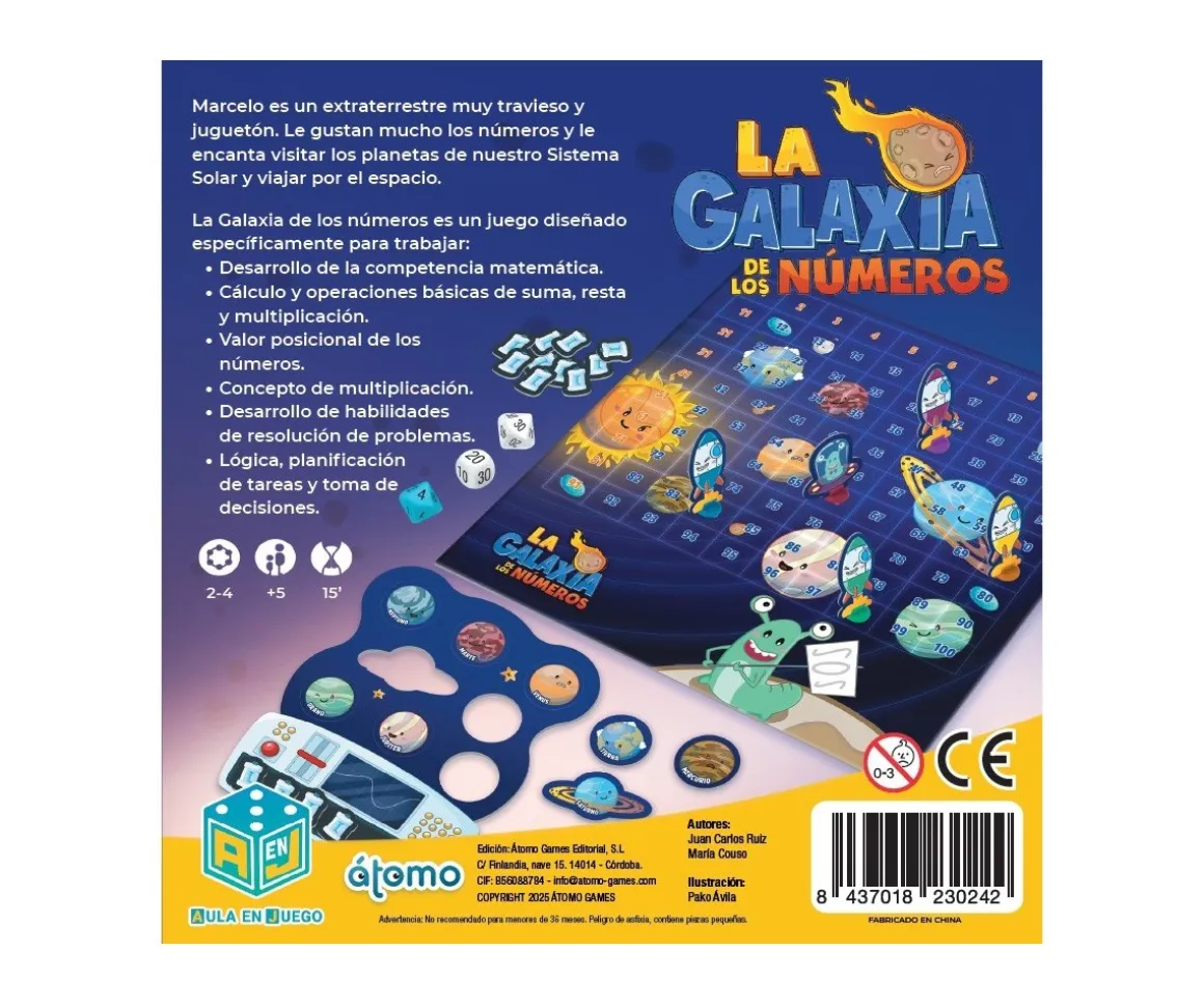 La Galaxia de los Números de Átomo es un juego de mesa educativo, diseñado para trabajar las habilidades matemáticas básicas mientras se divierten. Ideal tanto para jugar en familia como para usar en entornos escolares, este juego desarrolla competencias clave como el cálculo mental, la lógica, la toma de decisiones y la resolución de problemas.