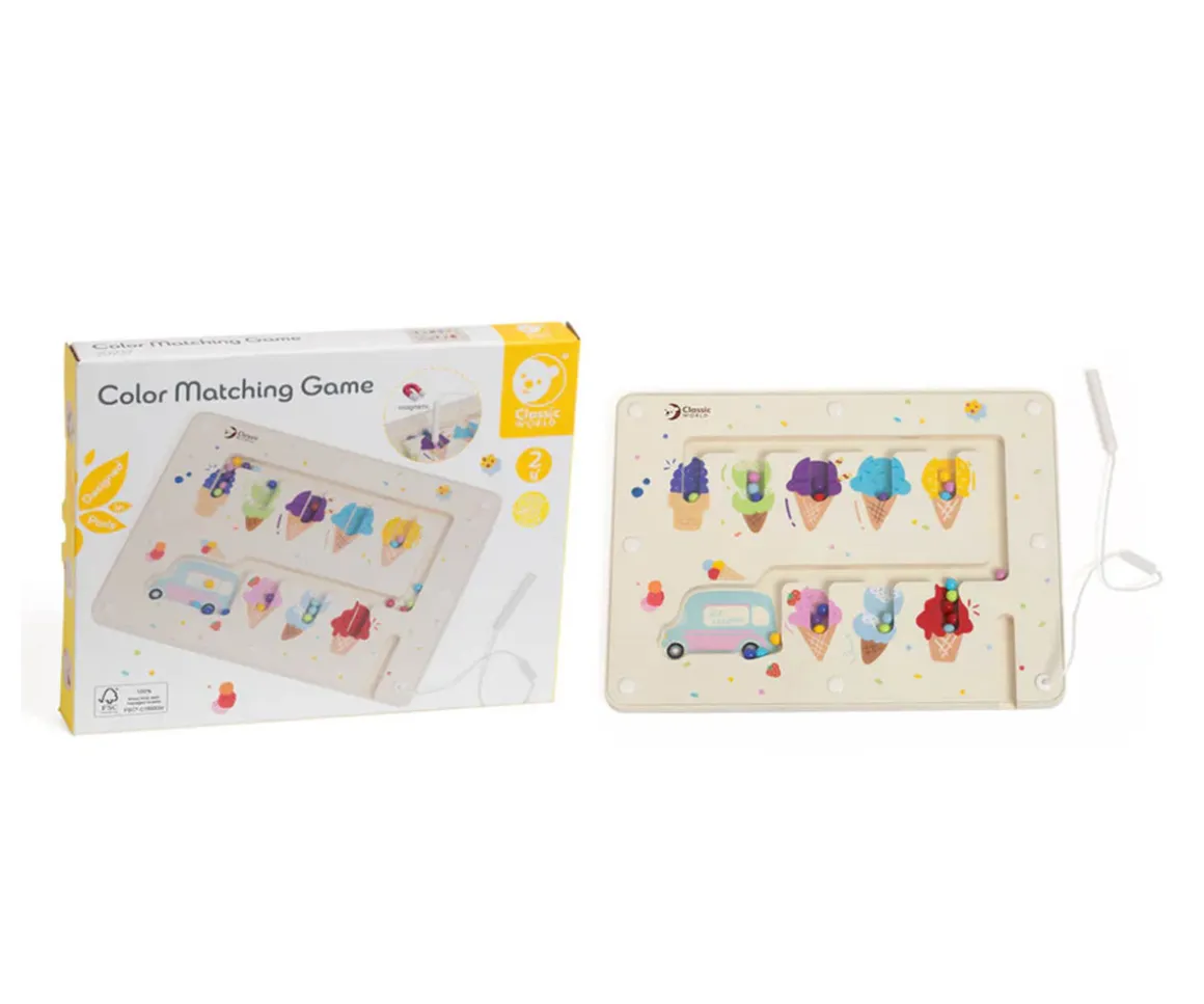 El panel de madera magnético con temática de helados cuenta con un bolígrafo magnético con el que tu peque podrá mover y colocar con precisión las coloridas bolas de helado en el cono correspondiente.