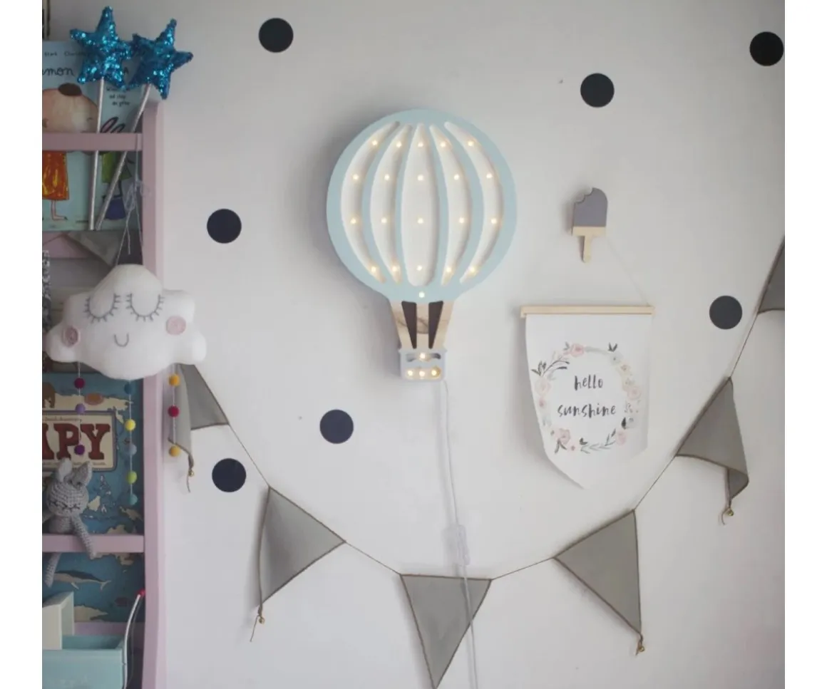 Conoce esta dulce lámpara en forma globo aerostático de color azul cielo de Little Lights