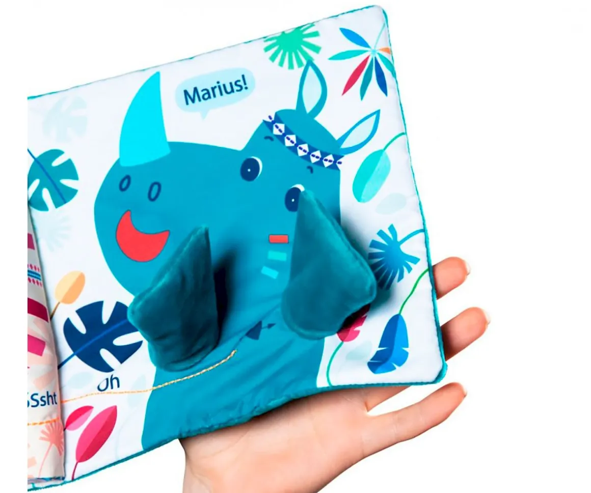 Marius está buscando a su papá. El peque de la casa tendrá que ayudarle a encontrarlo ayudandose de la pequeña marioneta y jugueteando con su dedito. Un libro de tela blandito que les fascinará.