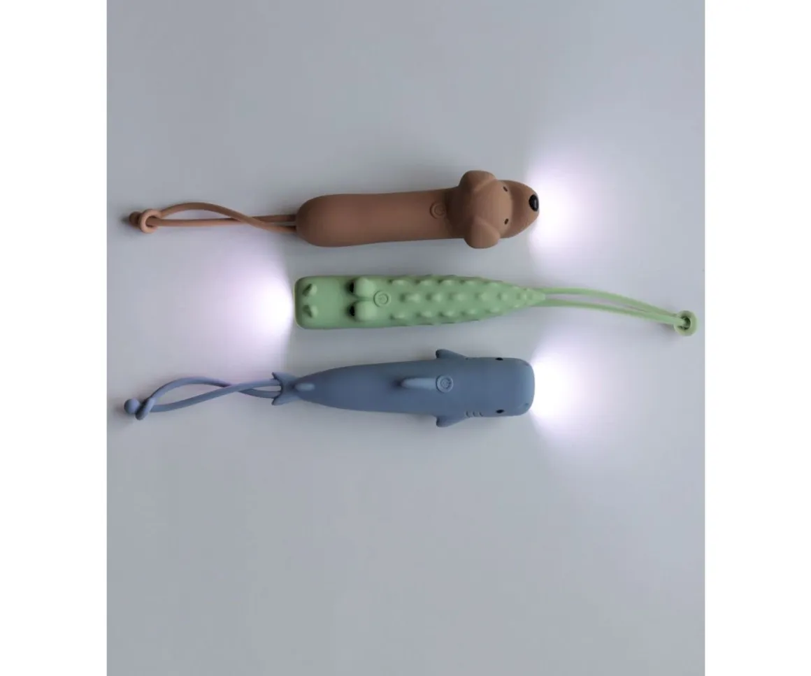 Original linterna recubierta de silicona suave con forma de perrito que los peques podrán usar en aventuras nocturnas al aire libre, en juego de sombras en casa o para contar cuentos antes de dormir.