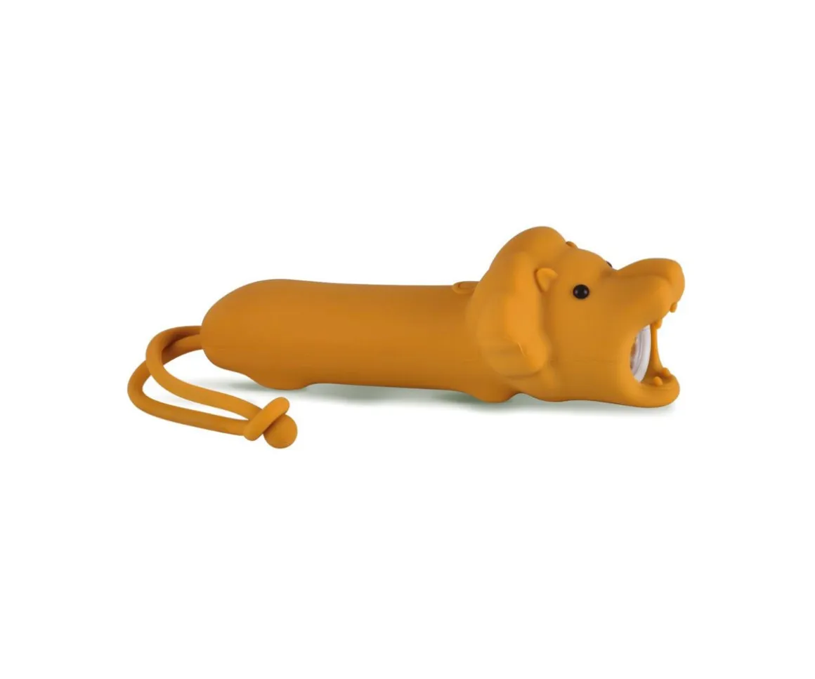Original linterna recubierta de silicona suave con forma de leoncito que los peques podrán usar en aventuras nocturnas al aire libre, en juego de sombras en casa o para contar cuentos antes de dormir.