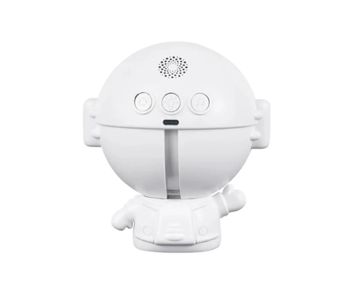 Preciosa lámpara proyector de luz GioStar con silueta de astronauta que aportará una sensación cálida y relajante tanto a peques como a mayores. Con planetas giratorios, estrellas centelleantes y un ambiente marino misterioso, brinda seguridad y tranquilidad en las horas nocturnas. La suave música calma y ayuda a los pequeños a conciliar el sueño.