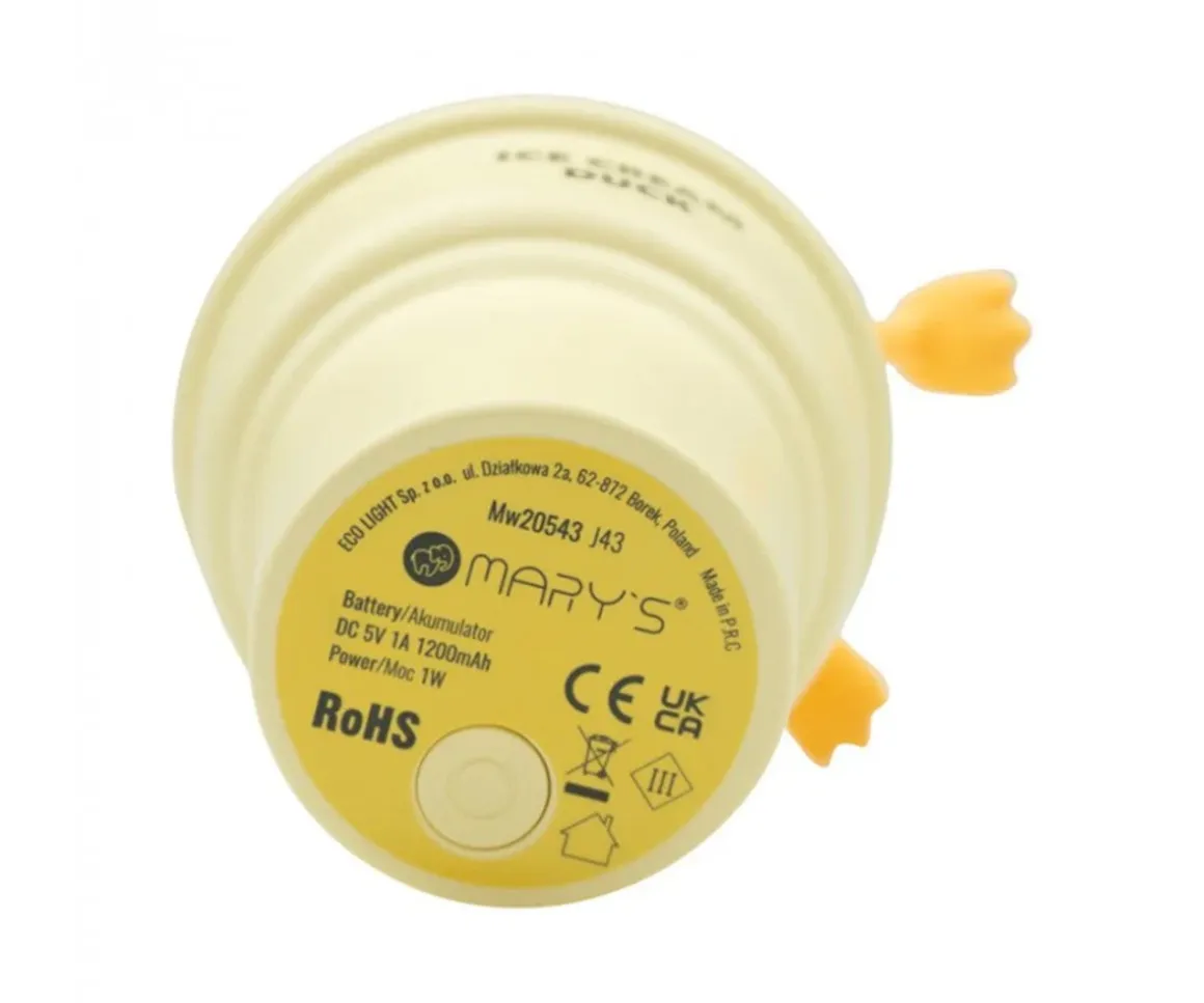 La luz nocturna LED Helado-Patito de Mary’s es una compañera adorable en forma de patito sobre un helado que transforma cualquier habitación en un espacio acogedor y lleno de ternura. Gracias a su diseño encantador, sus funciones prácticas y su luz suave, es perfecta para dormitorios infantiles, mesitas de noche, rincones de lactancia o espacios de relajación.
