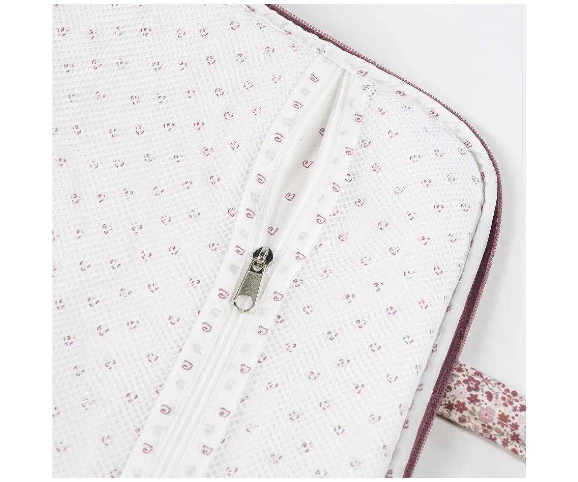 La maleta de bebé Cherry Flores de Pasito a Pasito es el complemento ideal para el hospital o la clínica. Confeccionada en loneta 100% algodón con delicado estampado floral y tratamiento waterproof, combina elegancia, funcionalidad y espacio para llevar todo lo que necesitas el día del nacimiento de tu bebé.