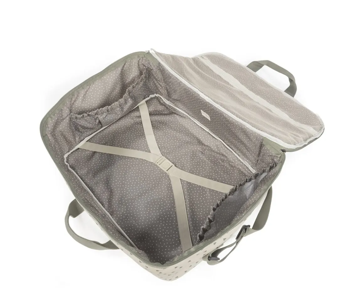 La maleta bebé Poppy Moss es ideal para el momento más importante del embarazo: la llegada del bebé. Con un diseño de corazones, es cómoda, ligera y fácil de manejar, con cremalleras en ambos sentidos y asas tanto largas como cortas. En su interior, tiene un forro a juego, gomas elásticas para mantener la ropa en su sitio y bolsillos abiertos en ambos lados.