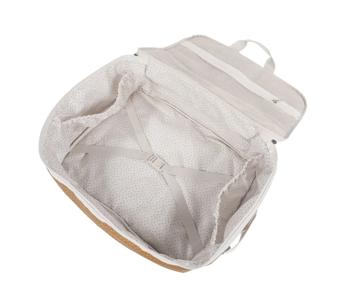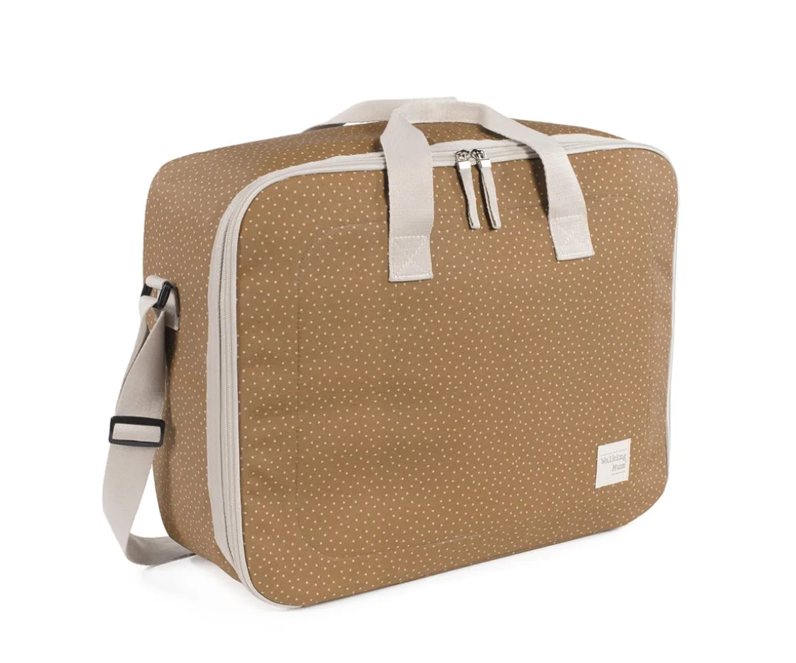 La maleta bebé Poppy Canela es ideal para el momento más importante del embarazo: la llegada del bebé. Con un diseño de lunares, es cómoda, ligera y fácil de manejar, con cremalleras en ambos sentidos y asas tanto largas como cortas. En su interior, tiene un forro a juego, gomas elásticas para mantener la ropa en su sitio y bolsillos abiertos en ambos lados.