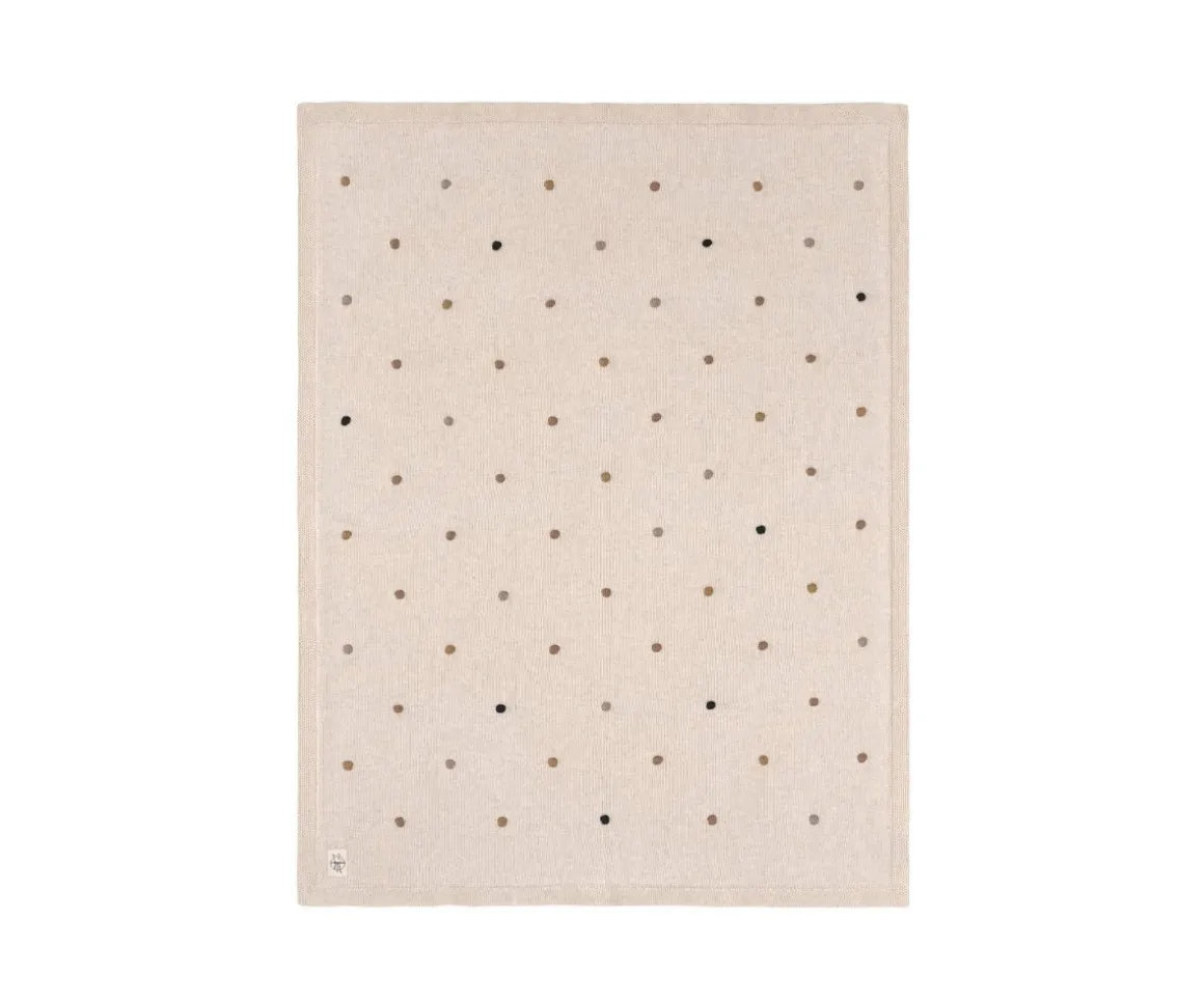 Esta manta de bebé está tejida con un patrón de puntos beige, hecha de algodón orgánico certificado GOTS y ofrece una sensación de bienestar.