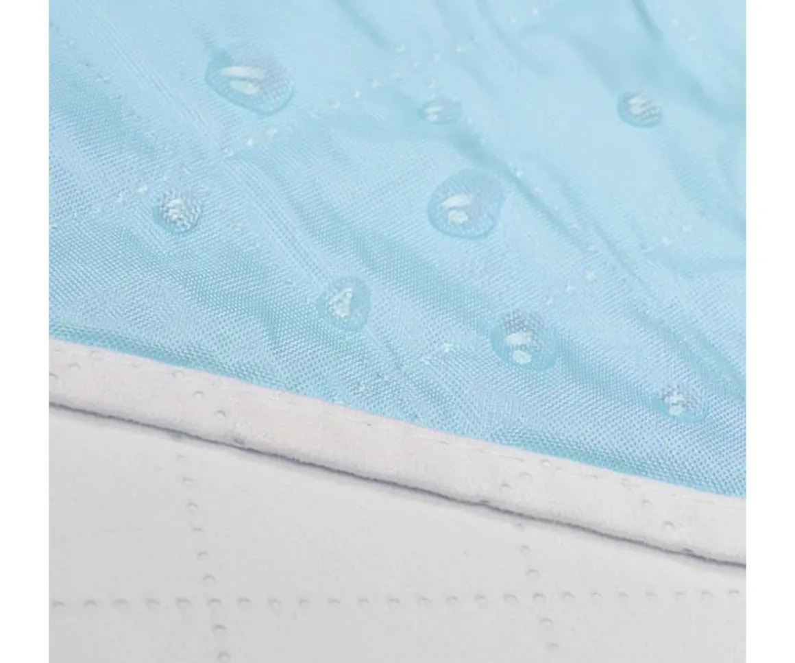 - Capa inferior fabricada con material 100% impermeable, evitando que se filtre el agua o la humedad