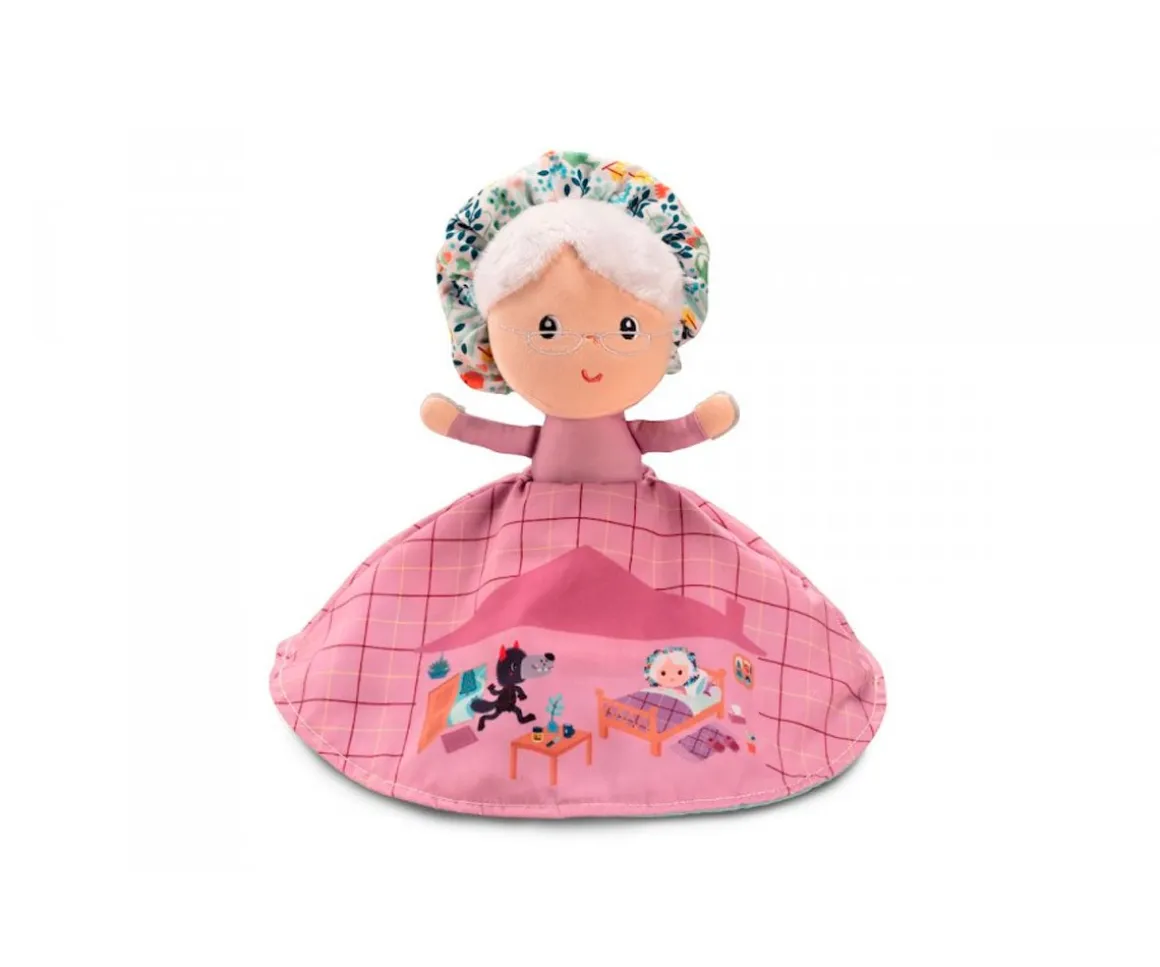 Con esta original marioneta reversible podrás contar el cuento de la caperucita roja ayudándote de los dibujitos que hay en los vestidos de caperucita y su abuelita. Deberás darle la vuelta a la marioneta para que vayan apareciendo la abuelita y el lobo.